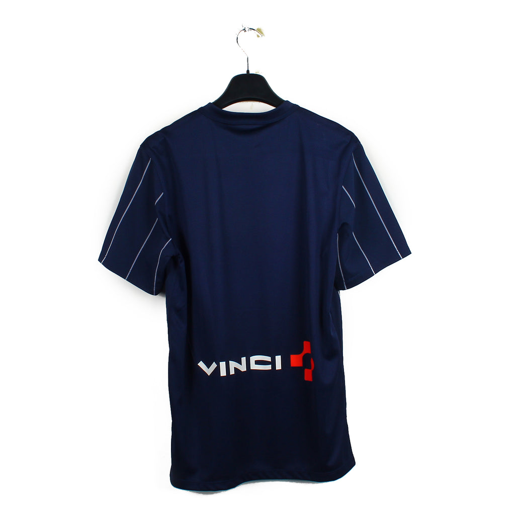 Histoire : Maillot domicile porté par les Parisiens lors de leur retour en Ligue 2, pour la première fois depuis 1983. Les hommes de Jean-Luc Vasseur ne créeront pas la surprise et n'arriveront pas à se maintenir dans l'antichambre de l'élite du football français.