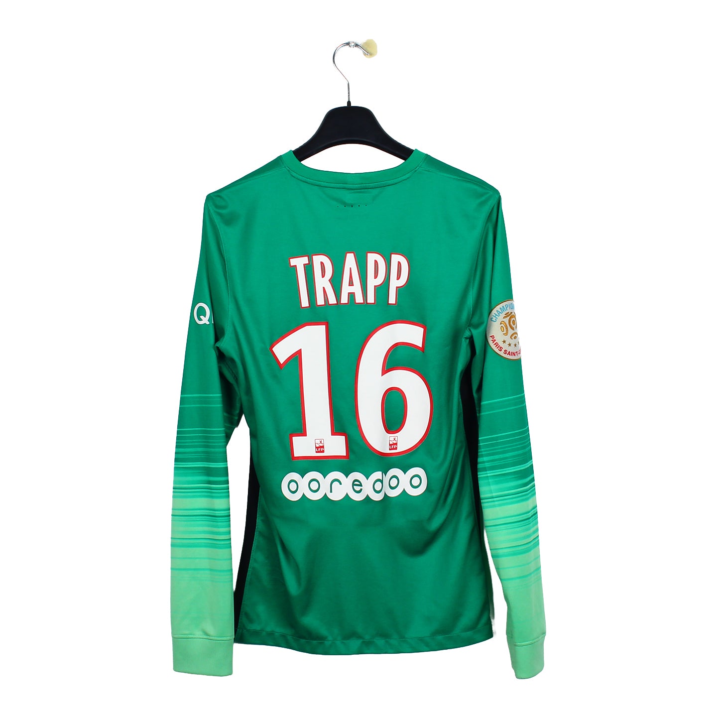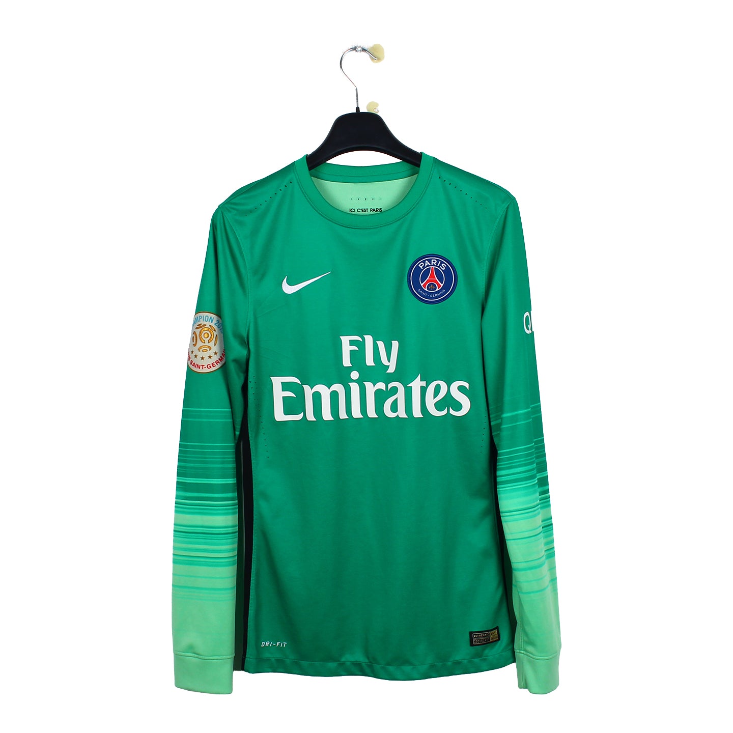 Histoire : Maillot gardien porté par les Parisiens sous les ordres de Laurent Blanc où ils écraseront le championnat, terminant la saison avec 96 points. Sur la scène européenne Blaise Matuidi et ses coéquipiers atteindront les quarts de finale, stade de la compétition où ils seront éliminés par Manchester City sur un score cumulé de 3-2.