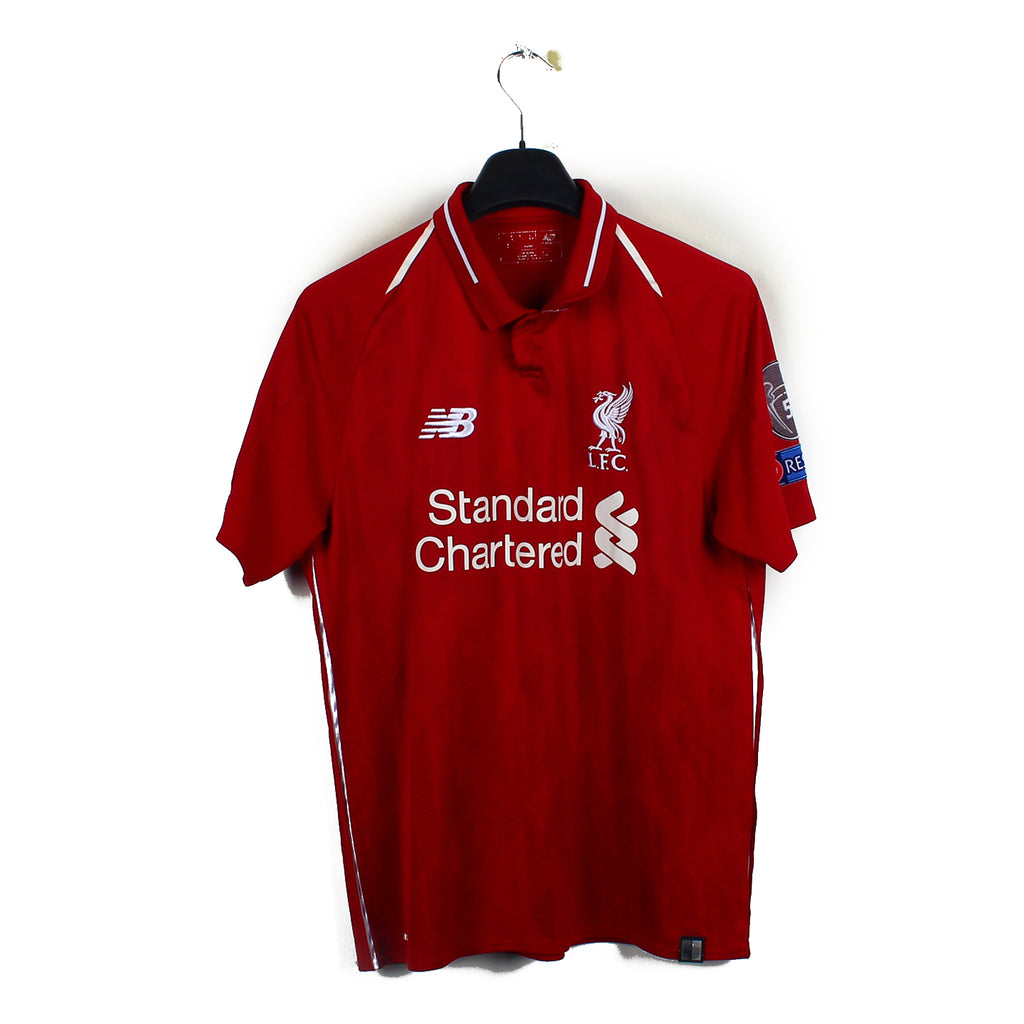 Histoire : Maillot domicile porté par les Reds sous les ordres de Jürgen Klopp. Ils termineront à une frustrante seconde place de Premier League. Sur la scène européenne, le club remportera la Champions League face à Tottenham (2-1).