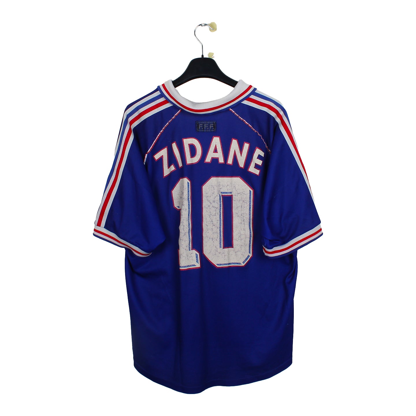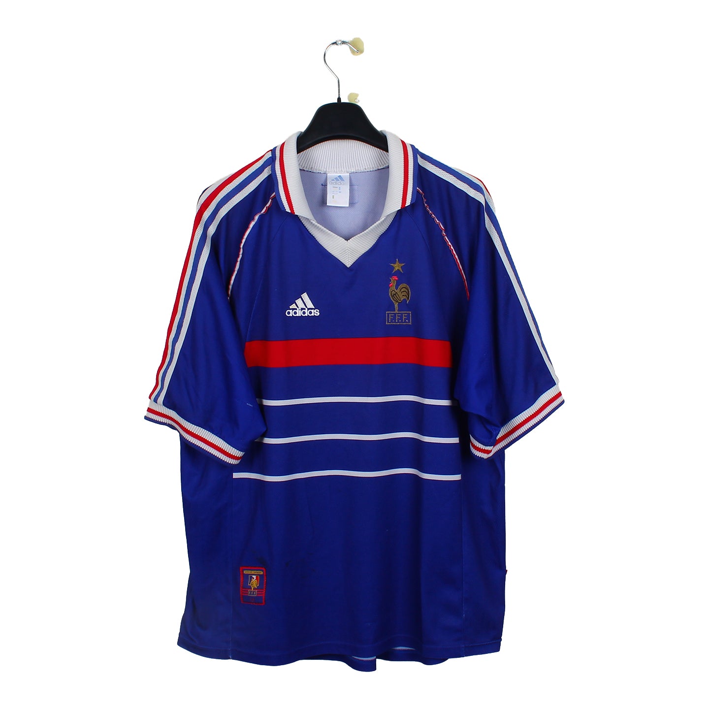 Histoire : Premier maillot comportant l'étoile sur l'écusson avec la légendaire victoire des Bleus de Zizou face aux Brésiliens de Ronaldo (3-0).