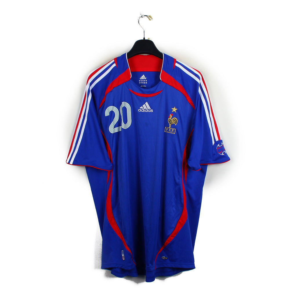 Histoire : Maillot domicile porté par les Français lors de la finale de la Coupe du monde 2006 où les Bleus seront battus dans une finale devenue historique face à l'Italie aux tirs aux buts.