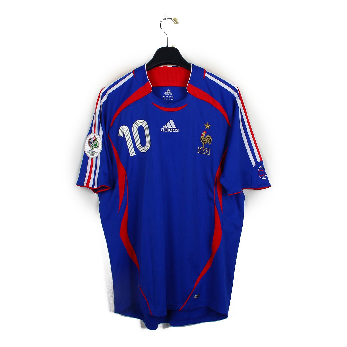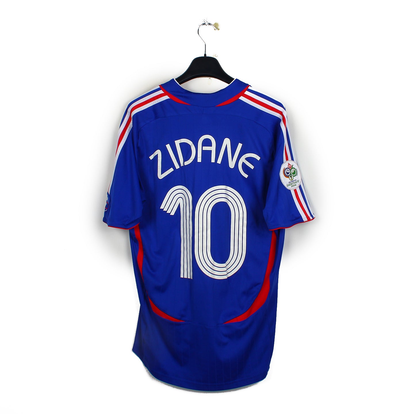 Histoire : Maillot domicile porté par les Français lors de la finale de la Coupe du monde 2006 où les Bleus seront battus dans une finale devenue historique face à l'Italie aux tirs aux buts.