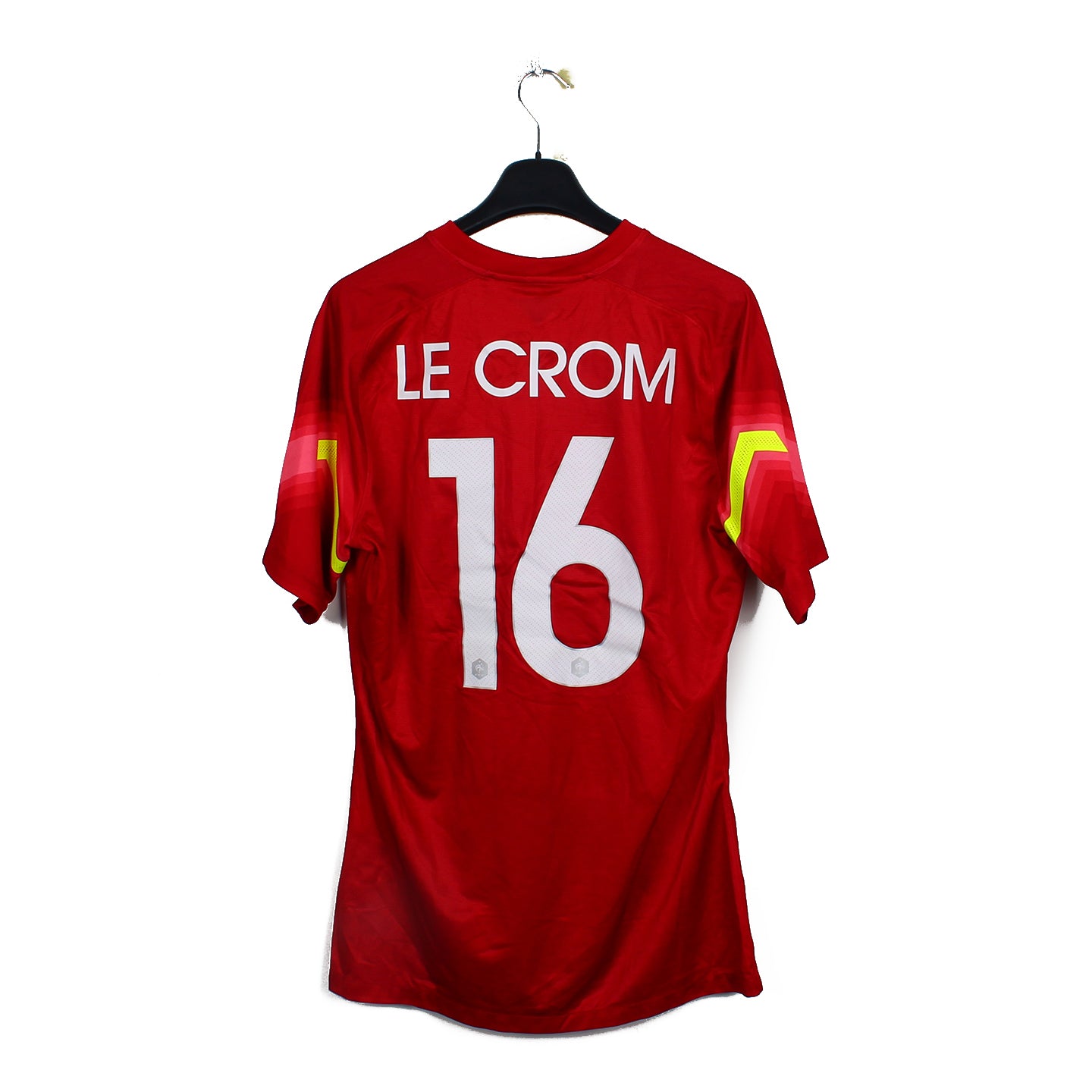 Le maillot est détail : Rare maillot gardien porté/préparé par Ronan Le Crom lors d'un match de Beach Soccer. Etiquettes différentes des modèles commercialisés, logos brodés et absence de l'étoile au dessus du coq. Il est dans un super état.