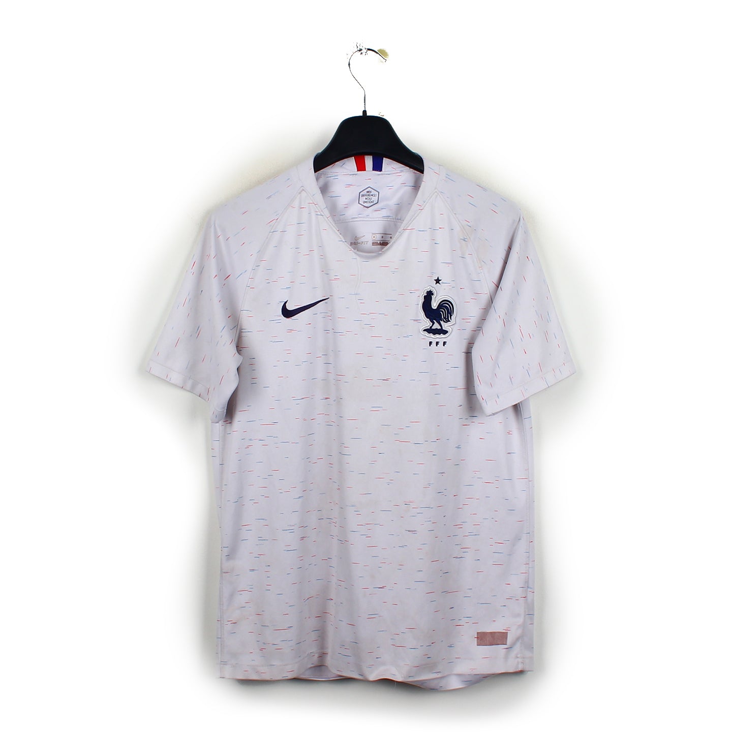 Histoire : Maillot extérieur arboré lors de la Coupe du Monde 2018 organisée en Russie, édition durant laquelle les bleus seront sacrés pour la seconde fois de leur histoire après 98. Pogba sera un grand artisan de la victoire des Bleus en inscrivant notamment un but en finale face à la Croatie (4-2).