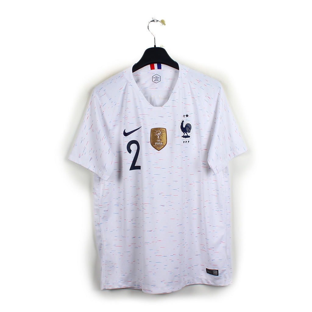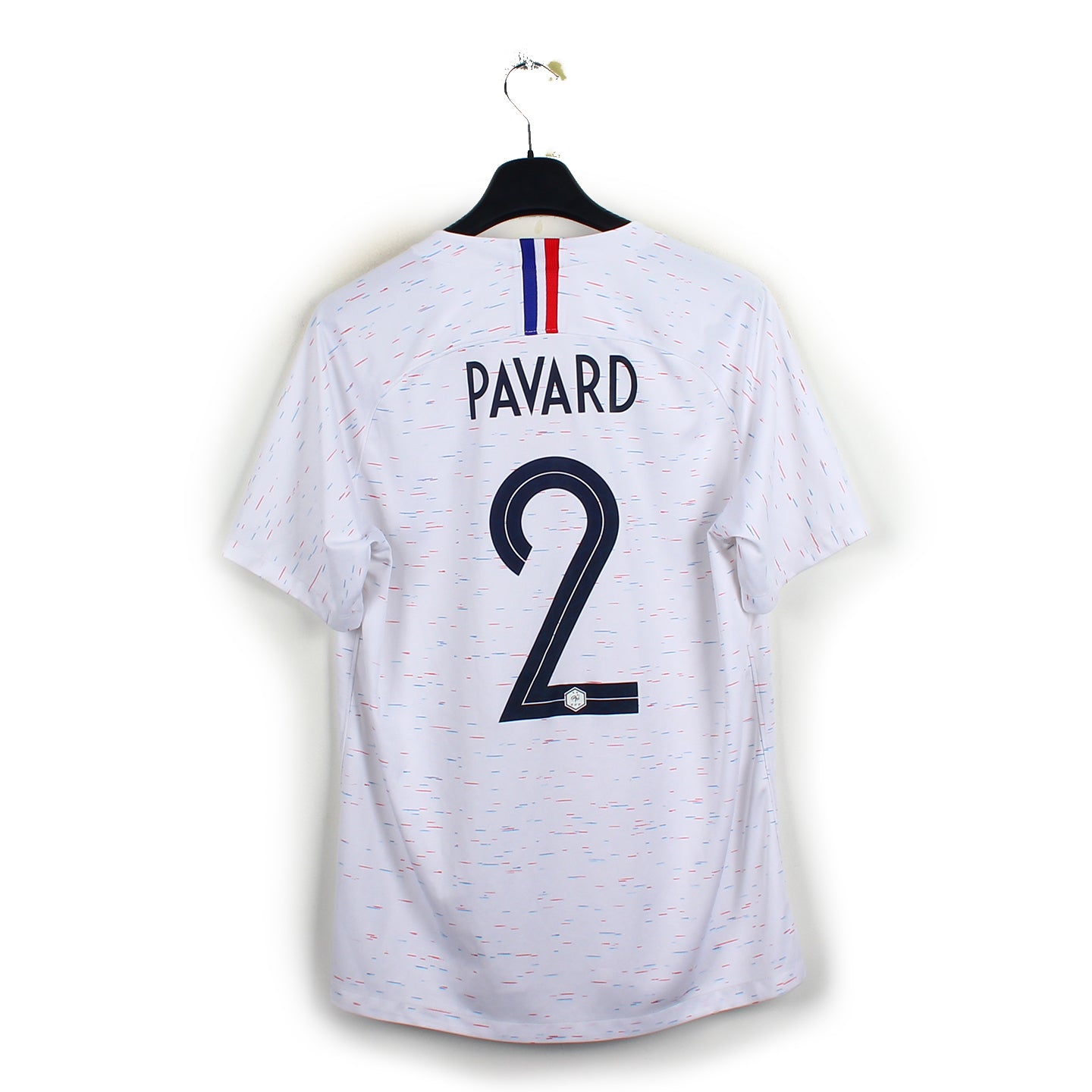 Histoire : Maillot extérieur arboré lors de la Coupe du Monde 2018 organisée en Russie, édition durant laquelle les bleus seront sacrés pour la seconde fois de leur histoire après 98. Pogba sera un grand artisan de la victoire des Bleus en inscrivant notamment un but en finale face à la Croatie (4-2).