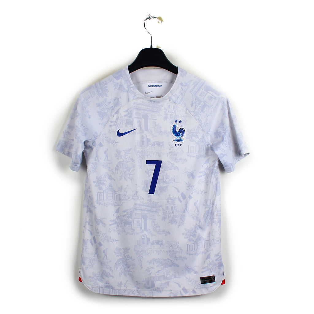 Histoire : Maillot extérieur porté lors de la Coupe du Monde 2022 où les Bleus seront vaincus par l'Argentine en finale.