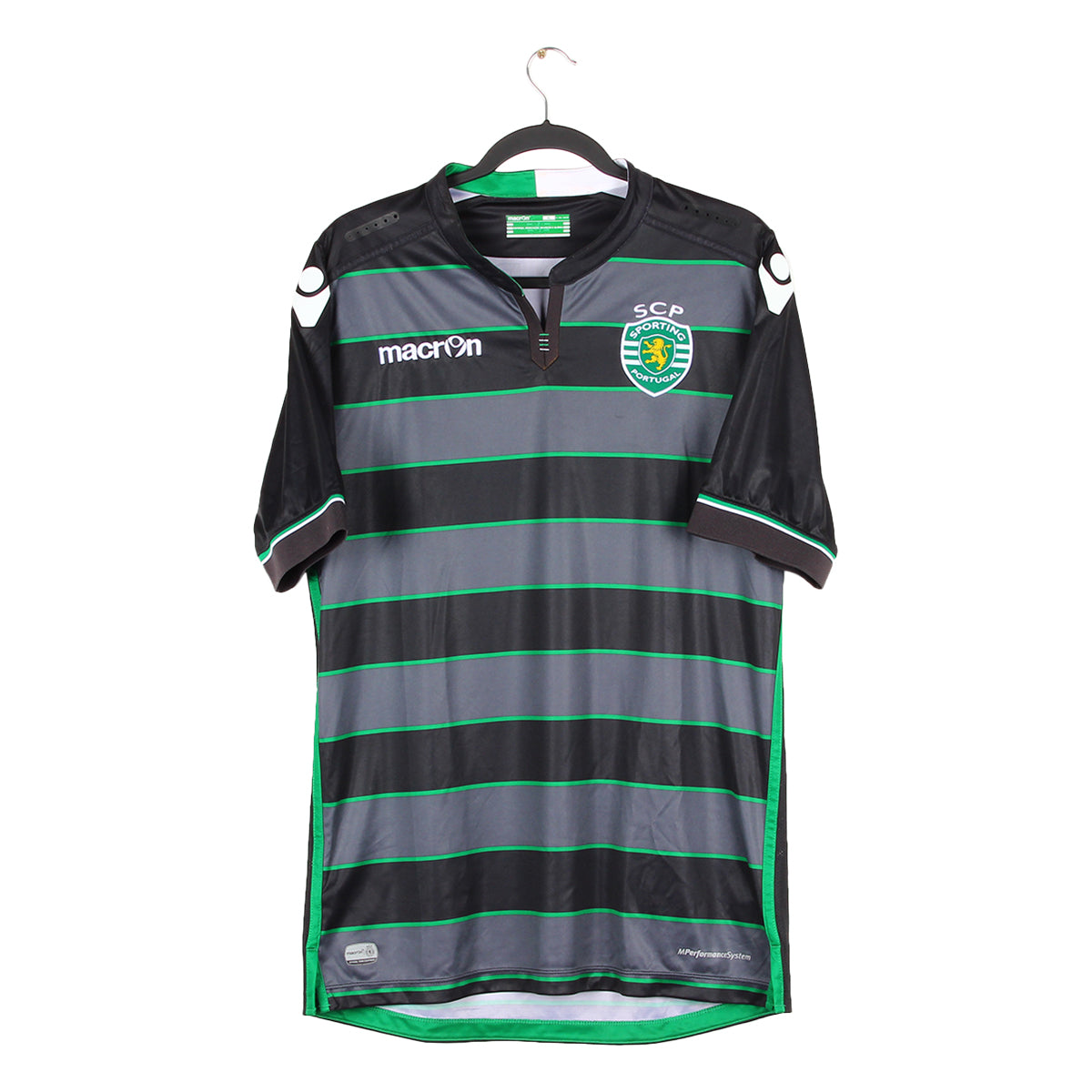 Histoire : Maillot extérieur porté lors de l'arrivée au club de Jorge Jesus. La saison sera remarquable pour le club de Lisbonne avec seulement 2 défaites, la meilleure défense et un Islam Slimani en feu. Le Sporting finira second à 2 points du Benfica et remportera la Supercoupe portugaise.