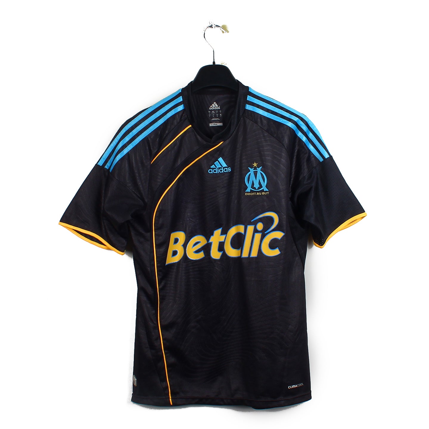 Histoire : Maillot third porté lorsque les hommes de Didier Deschamps seront sacrés champions de France, premier titre majeur depuis la victoire des olympiens en Champions League (1992/93). L'OM obtiendra aussi le doublé en gagnant la Coupe de la Ligue face aux Girondins.