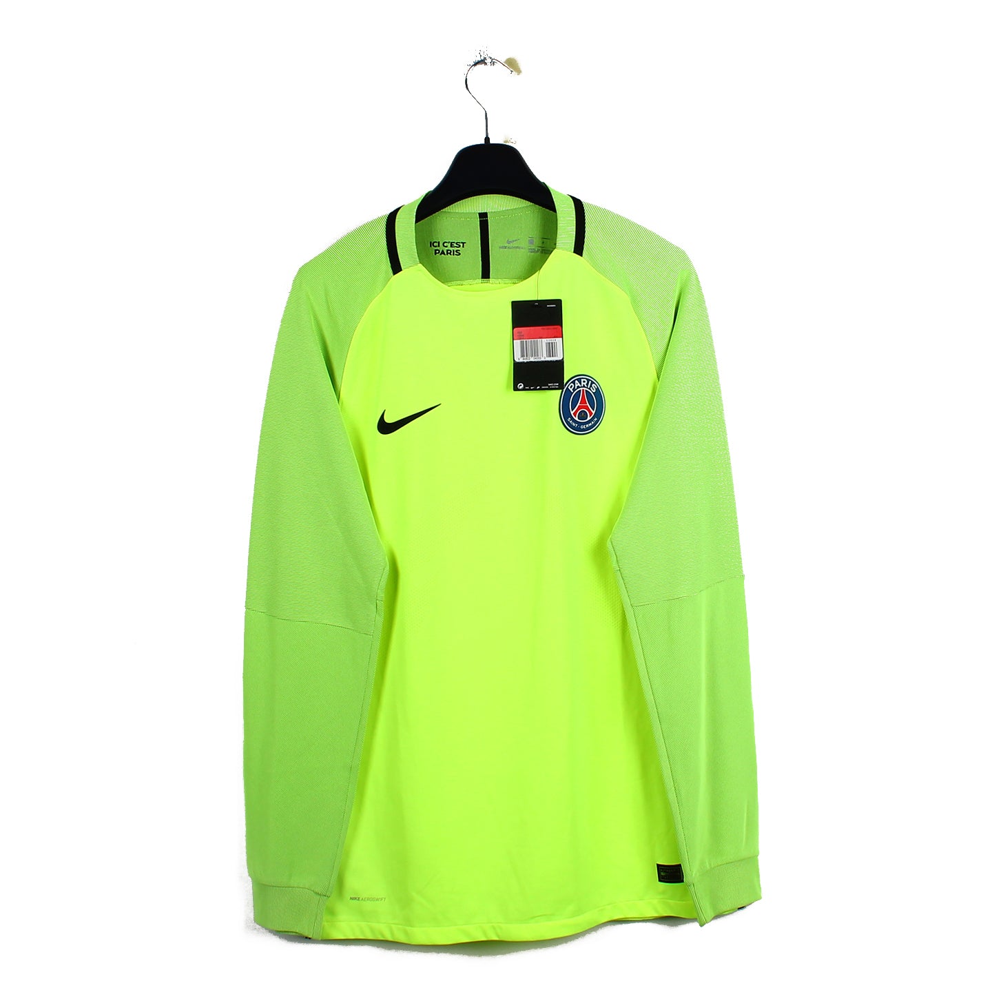 Histoire : Maillot gardien porté lors d'une saison où le PSG finira second de Ligue 1, devancé par Monaco. Leur campagne européenne se terminera au Camp Nou, soirée de la fameuse remontada.