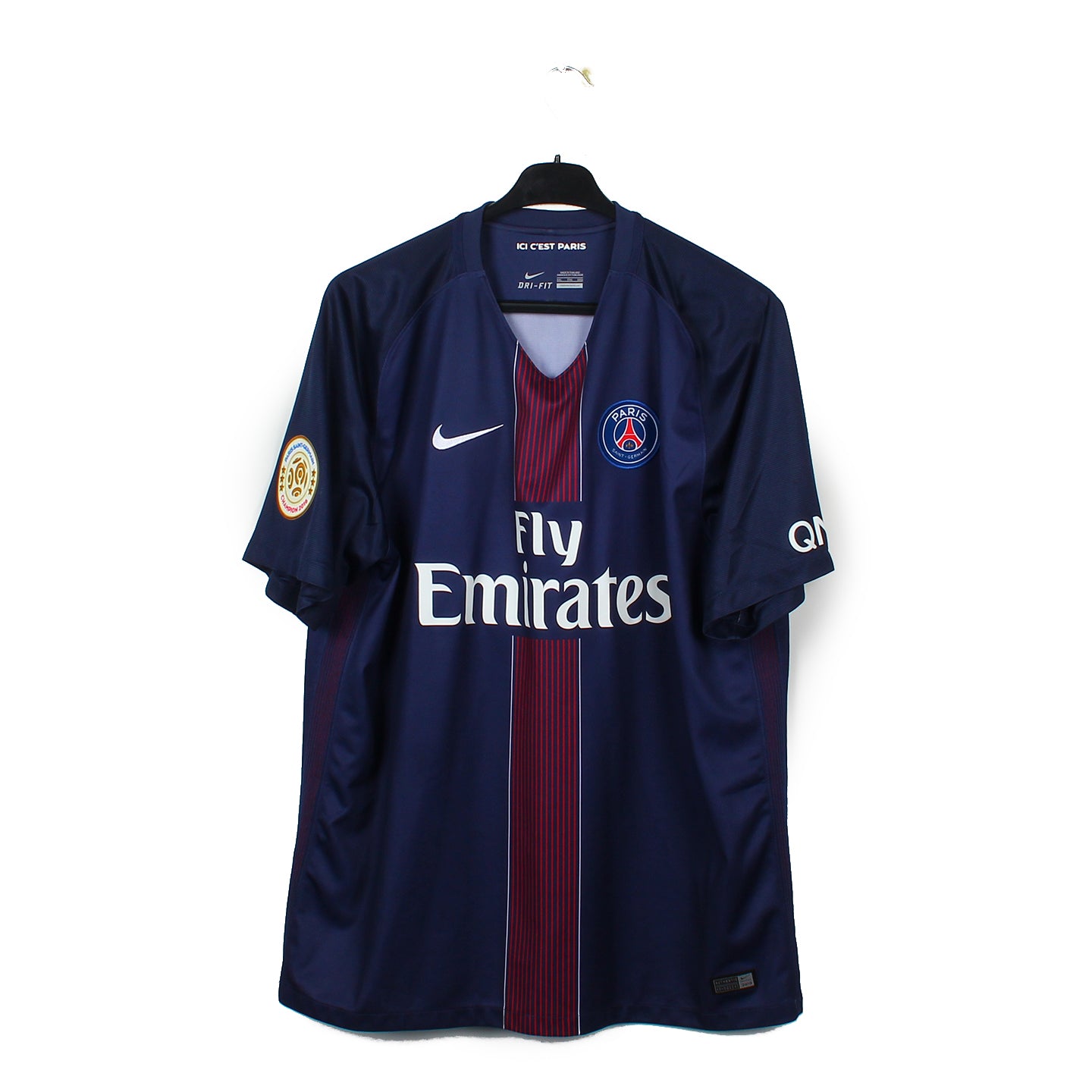 Histoire : Maillot domicile porté lors d'une saison où le PSG finira second de Ligue 1, devancé par Monaco. Leur campagne européenne se terminera au Camp Nou, soirée de la fameuse remontada.
