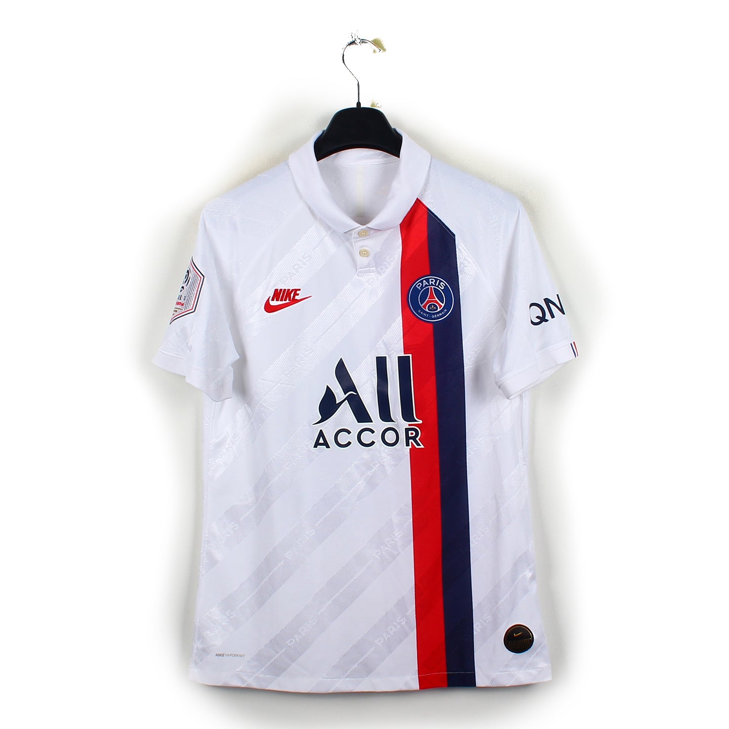 Histoire : Maillot third porté par les hommes de Thomas Tuchel lors d'une très belle saison conclue à 30 réalisations pour Mbappé. Les joueurs de la capitale réaliseront haut la main le triplé championnat, Coupe de la Ligue et Coupe de France, mais devront s'incliner 1-0 en finale de la Ligue des Champions face au Bayern Munich, au terme d'un excellent parcours.