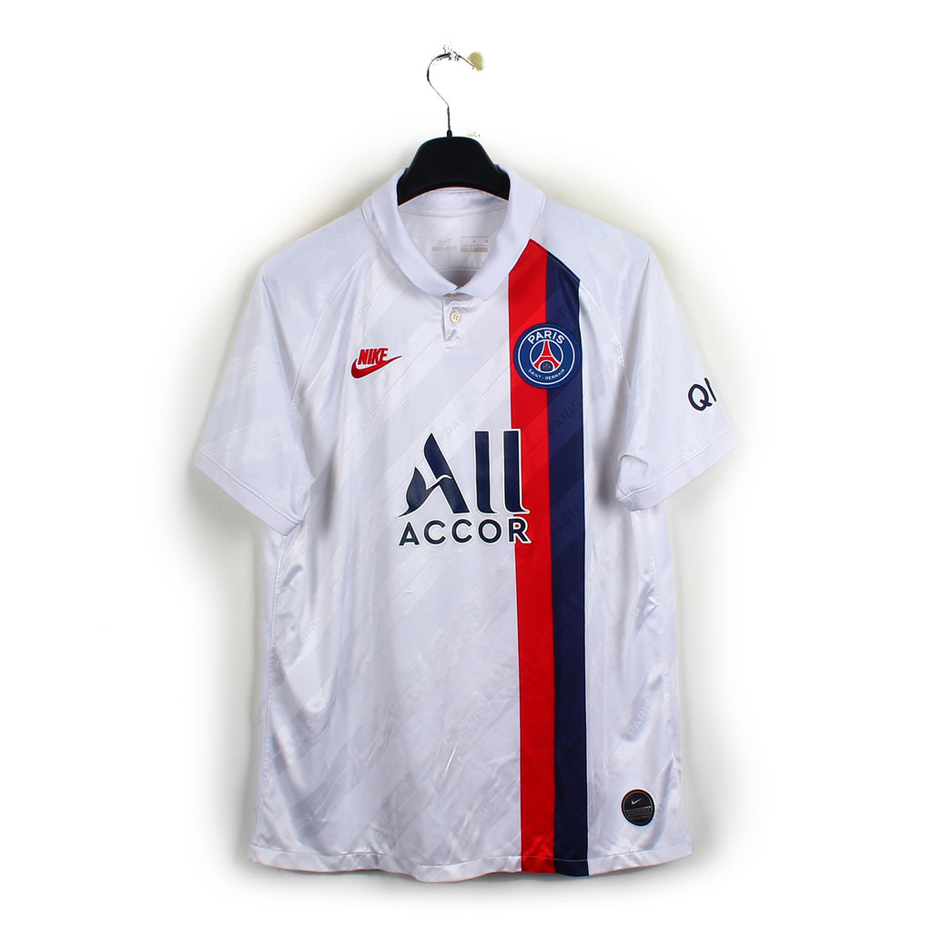 Histoire : Maillot third porté par les hommes de Thomas Tuchel lors d'une très belle saison conclue à 30 réalisations pour Mbappé. Les joueurs de la capitale réaliseront haut la main le triplé championnat, Coupe de la Ligue et Coupe de France, mais devront s'incliner 1-0 en finale de la Ligue des Champions face au Bayern Munich, au terme d'un excellent parcours.
