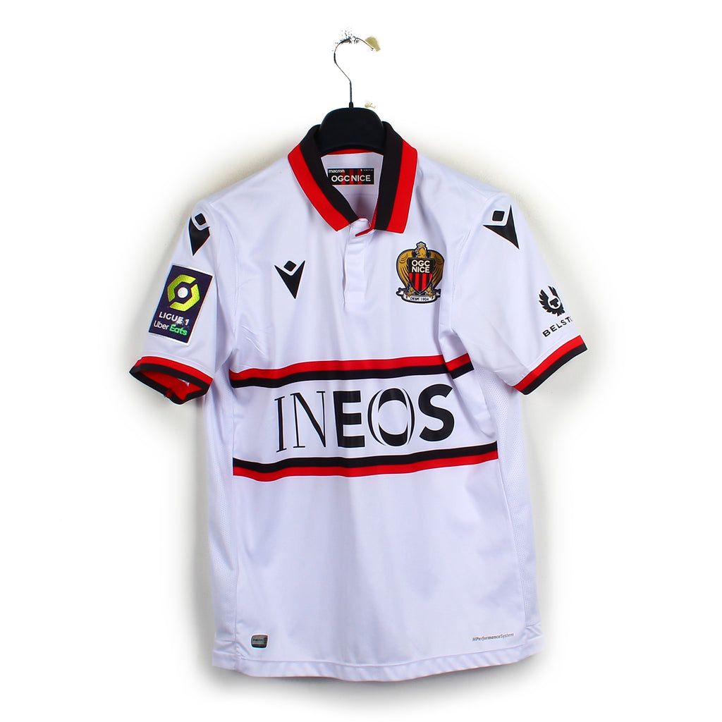 Histoire : Maillot extérieur porté par les hommes de Patrick Vieira, remplacé en cours de saison par Adrian Ursea. Les Aiglons finiront 9ème de Ligue 1 et seront éliminés en phase de groupe de Ligue Europa.