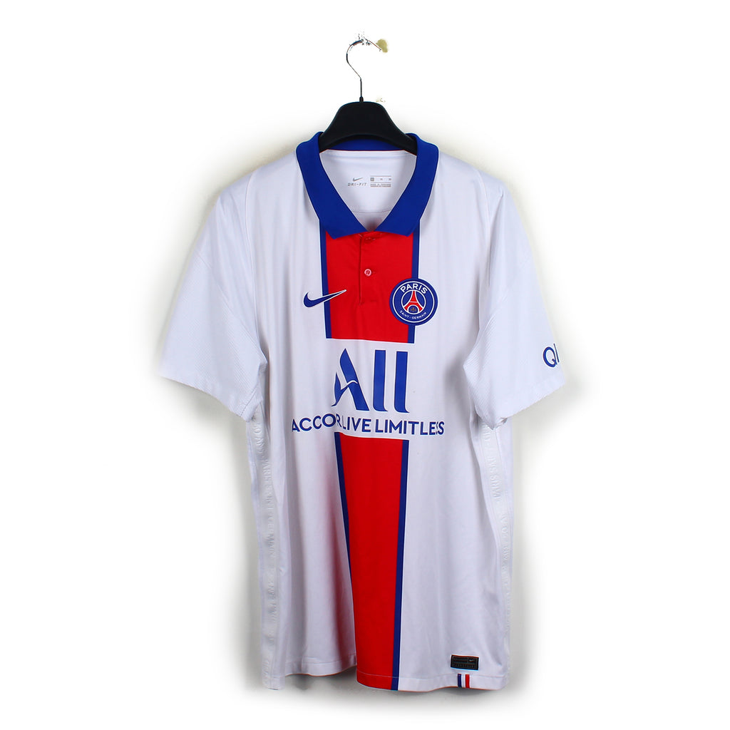 Histoire : Maillot extérieur porté par les Parisiens. Durant cet exercice, le club de la capitale décidera de remplacer Tuchel par Pochettino à la mi-saison mais les joueurs se feront quand même devancer par Lille dans la course au titre de Ligue 1.