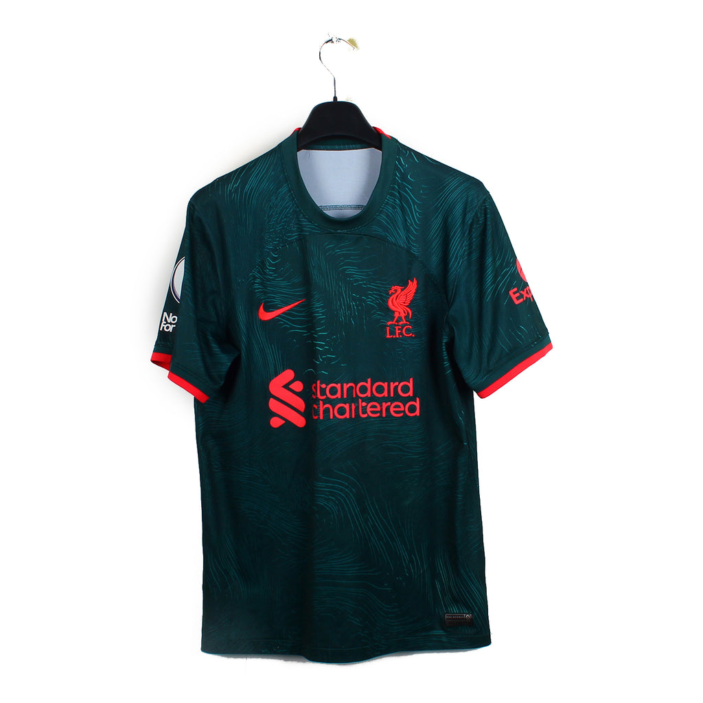 Histoire : Maillot third porté par les Reds lors d'une saison finie à la 5ème place de Premier League. Ils seront éliminés en 8ème de Champions League par le Real Madrid.
