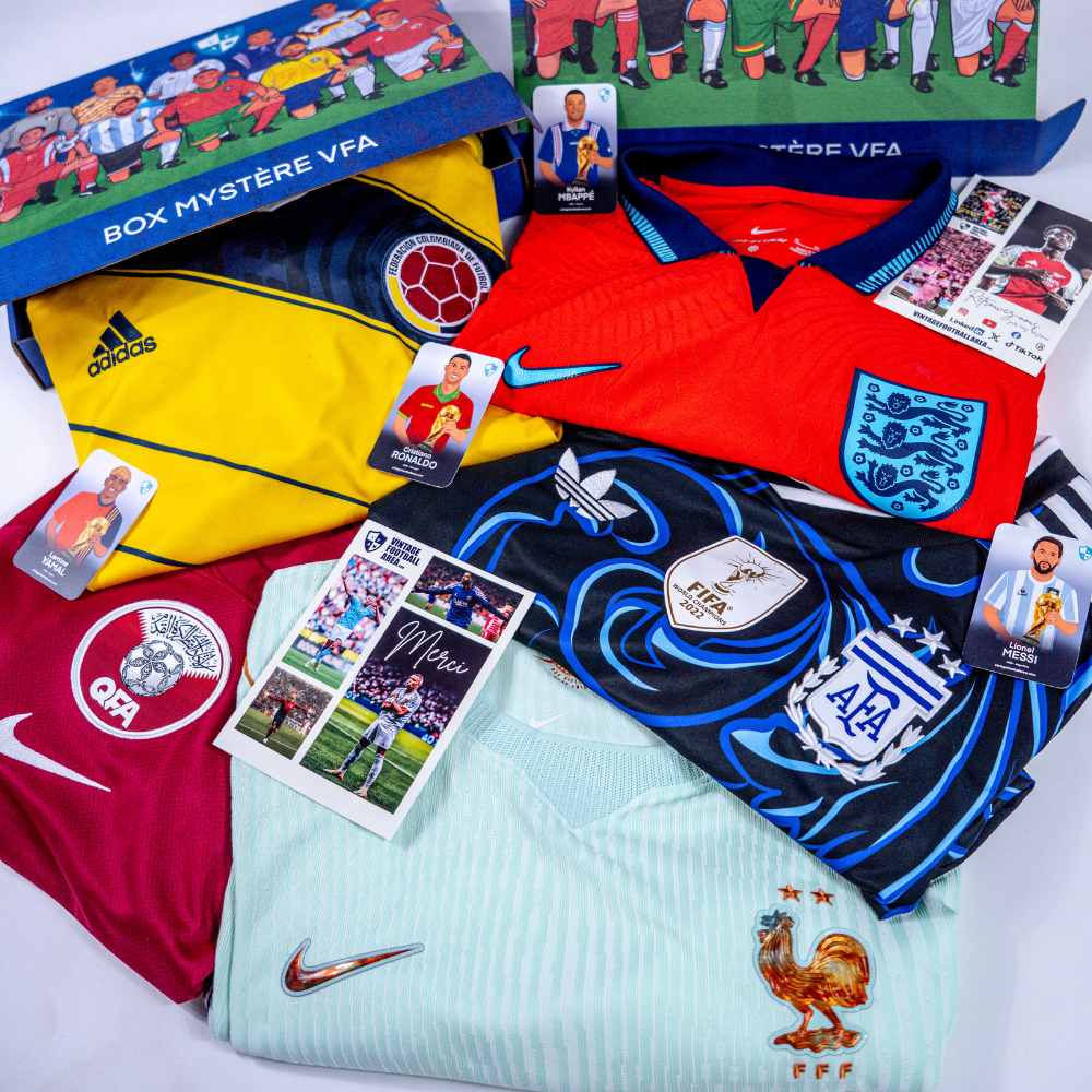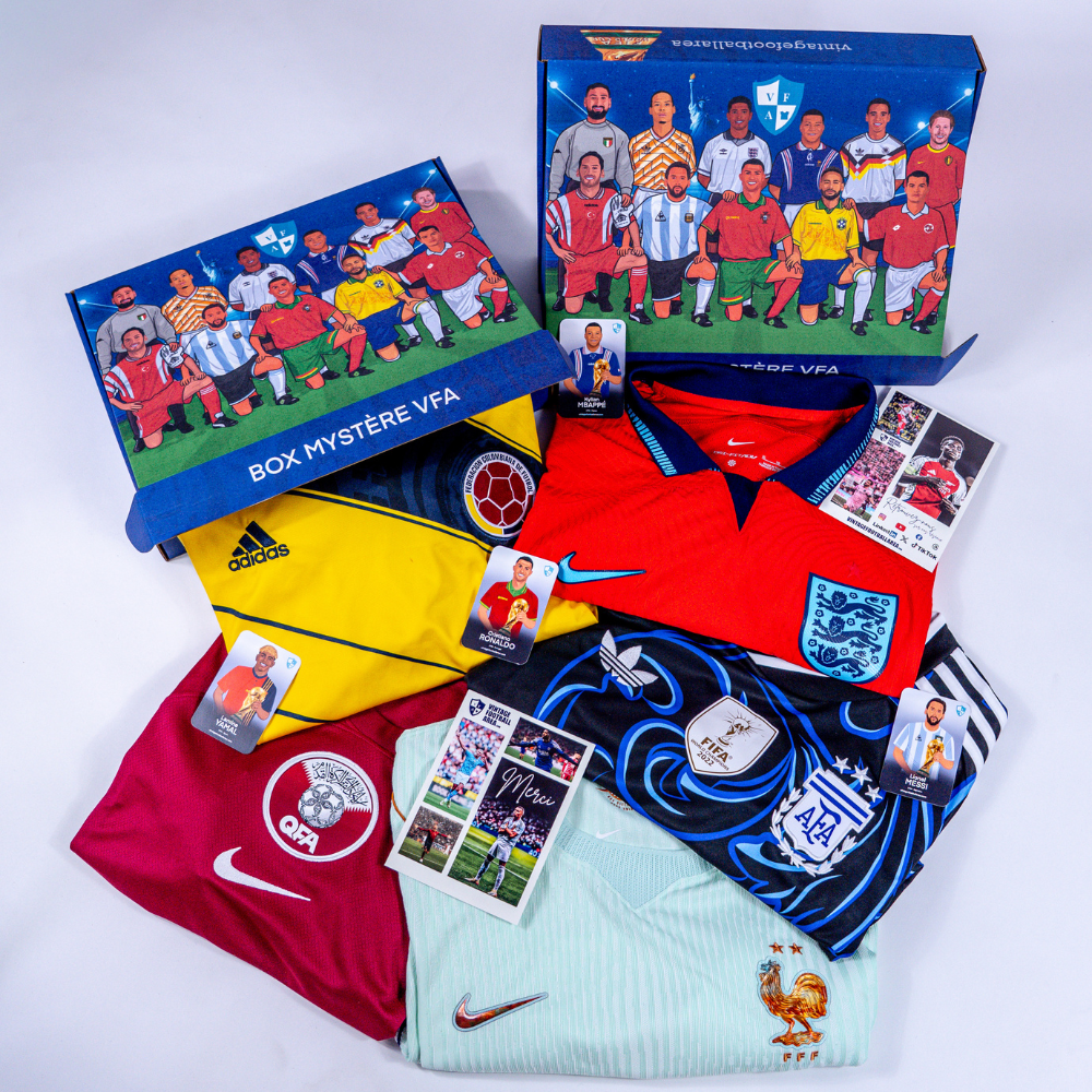 NOUVELLE BOX AU DESIGN UNIQUE ! Le concept ? Vous recevez un maillot au hasard d'une valeur de 54.99€ ou plus avec des gadgets ! Indiquez dans votre panier les équipes que vous ne souhaitez pas avoir ! UNIQUEMENT DES MAILLOTS DE SELECTIONS NATIONALES