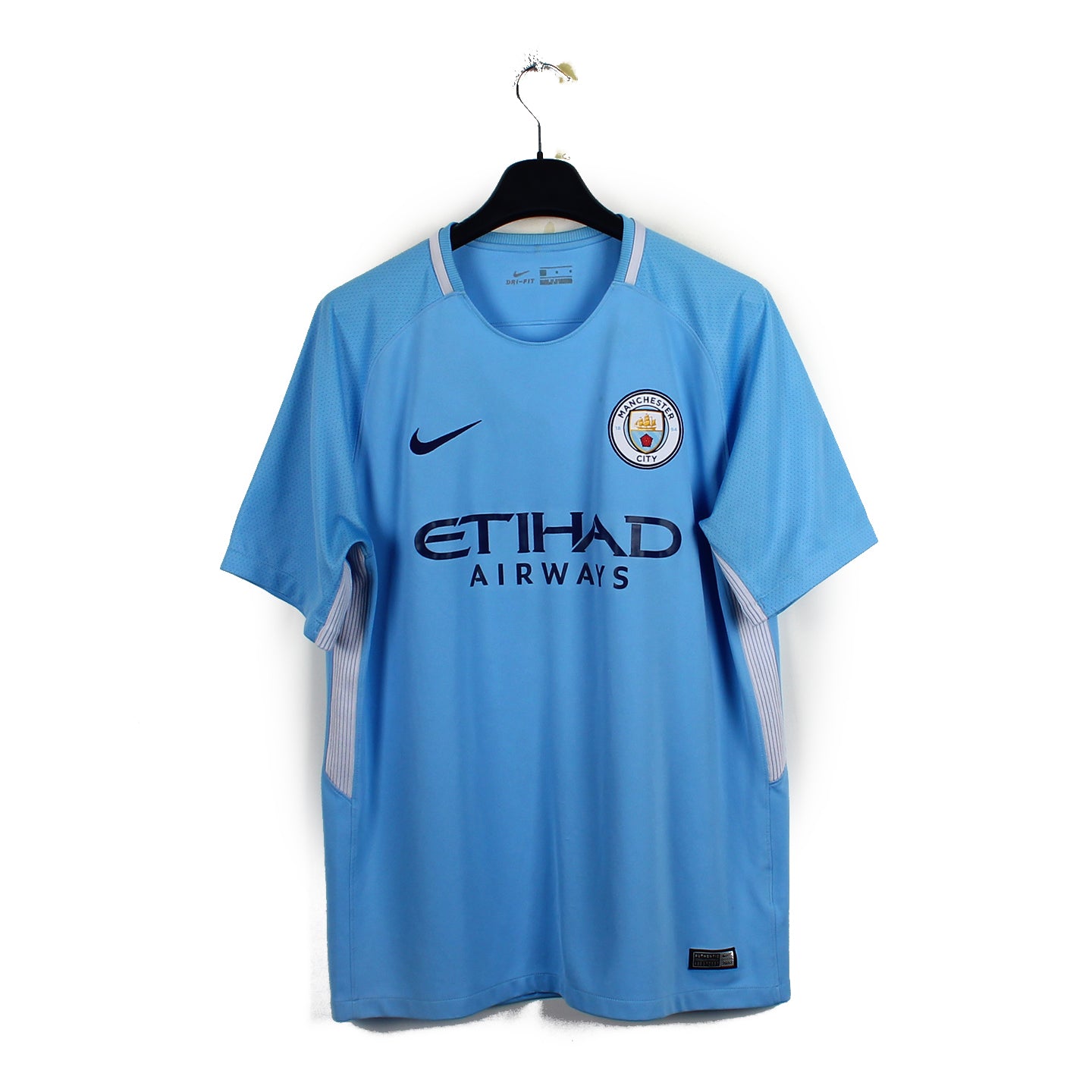 Histoire : Maillot domicile porté par les hommes de Guardiola pour sa seconde saison sur le banc Citizen. Après un premier exercice vierge, le tacticien réalisera cette saison là le doublé EFL Cup et Championnat. Aguero se fera par ailleurs remarqué par ses 25 réalisations. En ligues des champions, Liverpool privera Manchester d'une place dans le dernier carré.