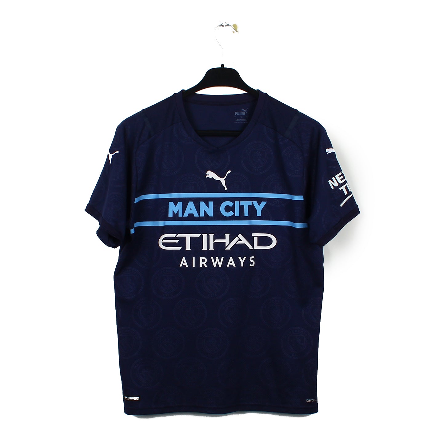 Histoire : Maillot third porté lorsque City remportera une nouvelle fois la Premier League. La lutte sera intense avec les Reds de Liverpool mais ce sont finalement les protégés de Pep Guardiola qui seront sacrés. En Champions League, les Citizens s'arrêteront en demi-finale après une double confrontation mémorable face au Real Madrid de Benzema.