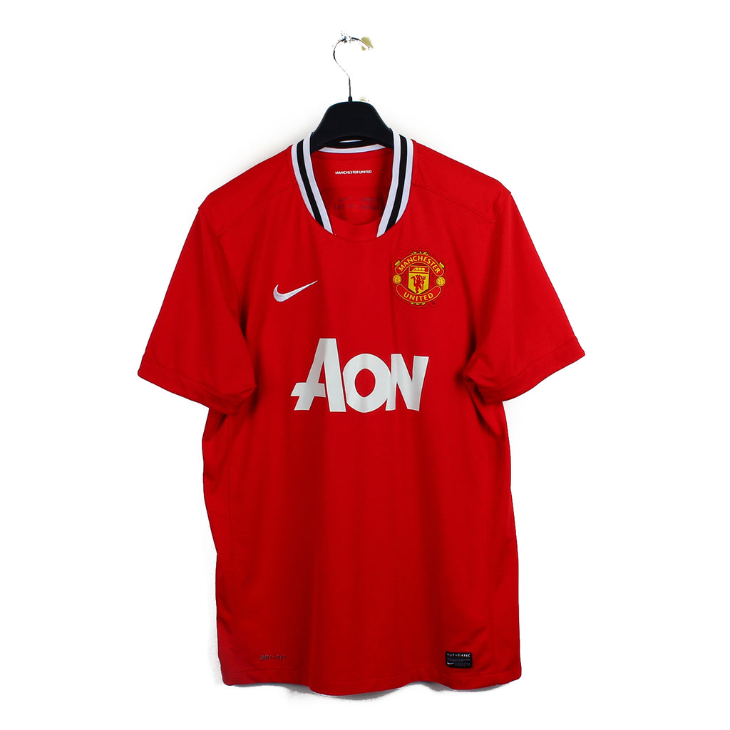 Histoire : Maillot domicile porté sous l'ère Sir Alex Ferguson lors d'une saison assez compliquée où ses hommes gagneront uniquement le Community Shield. Fameuse année où le but d'Aguero dans les dernières secondes briseront les rêves de titre des Red Devils, pourtant à égalité de point avec les Citizens.
