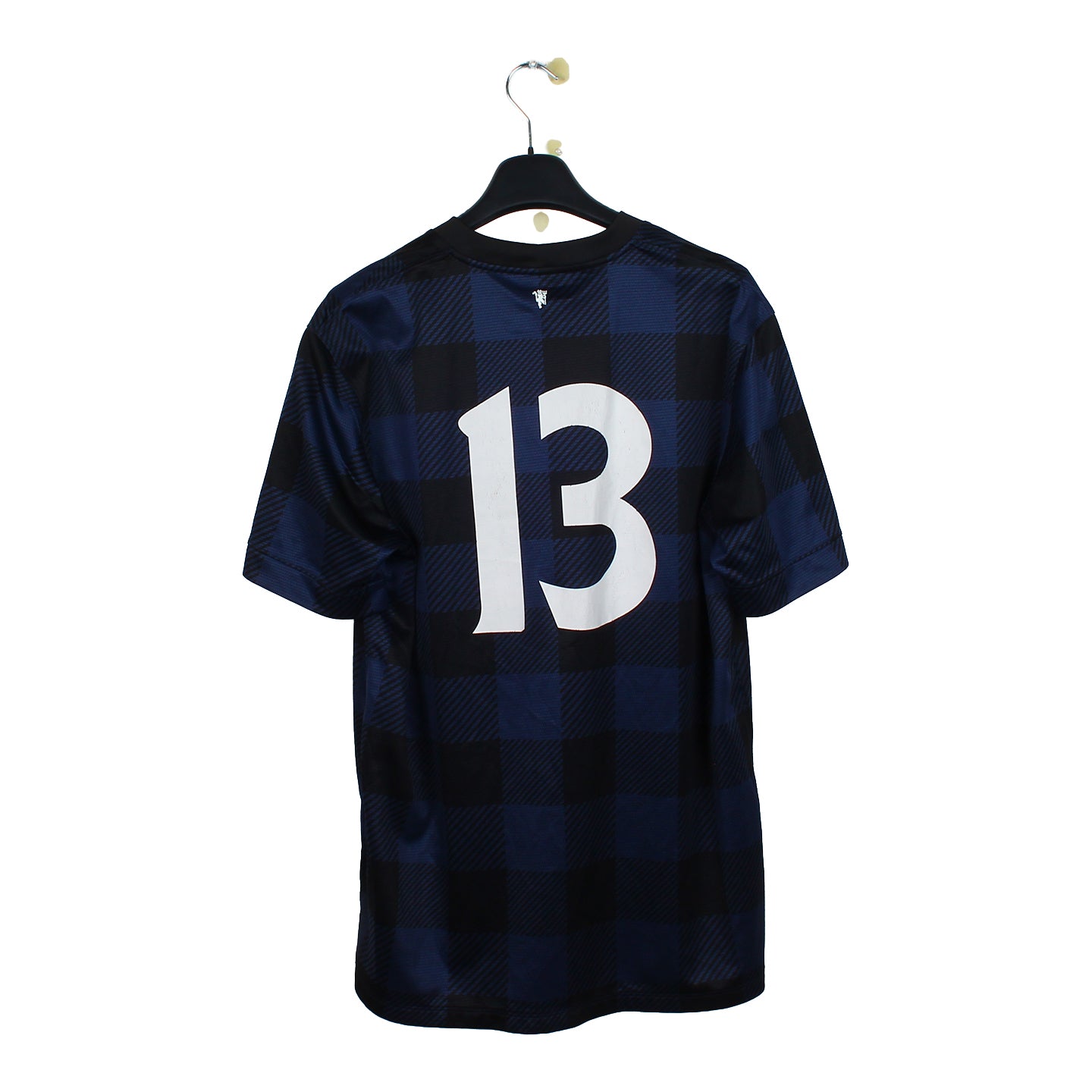 Histoire : Maillot extérieur porté durant la saison qui précédait le départ de Sir Alex Ferguson. Remplacé par David Moyes, la saison des Reds Devils fut très compliquée, pointant à la 7ème place du championnat. Giggs prendra sa place en cours de saison en tant qu'entraîneur-joueur.