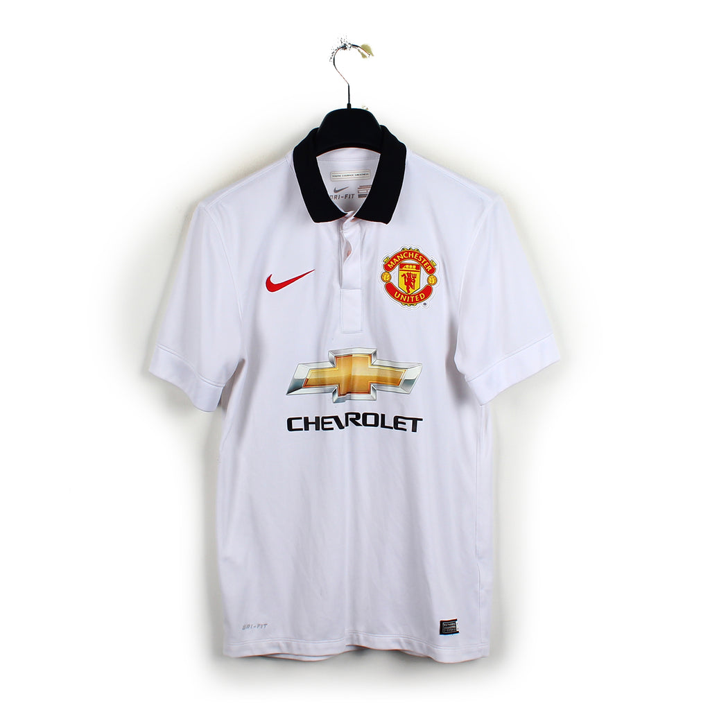 Histoire : Maillot Third porté par les Mancuniens lors de la saison qui verra Louis van Gaal arriver à la tête de l'équipe. Les Reds Devils termineront 4ème de Premier League permettant au club de se qualifier pour les barrages de la Champions League. Wayne Rooney et Di Maria termineront respectivement meilleur buteur et passeur du club sur la saison.