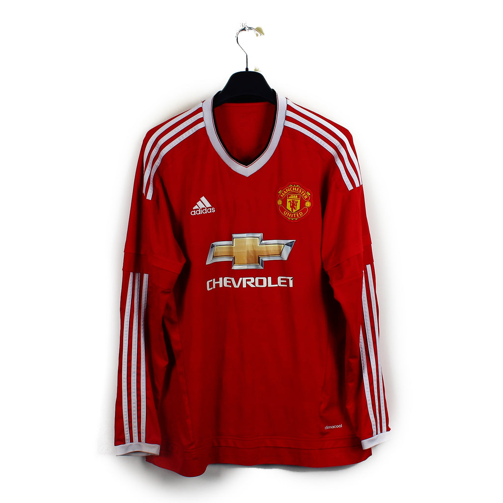 Histoire : Maillot domicile porté par les Red Devils lors de la dernière saison de Van Gaal au club. Les Mancuniens remporteront la FA Cup, qui viendra leur sauver la saison.