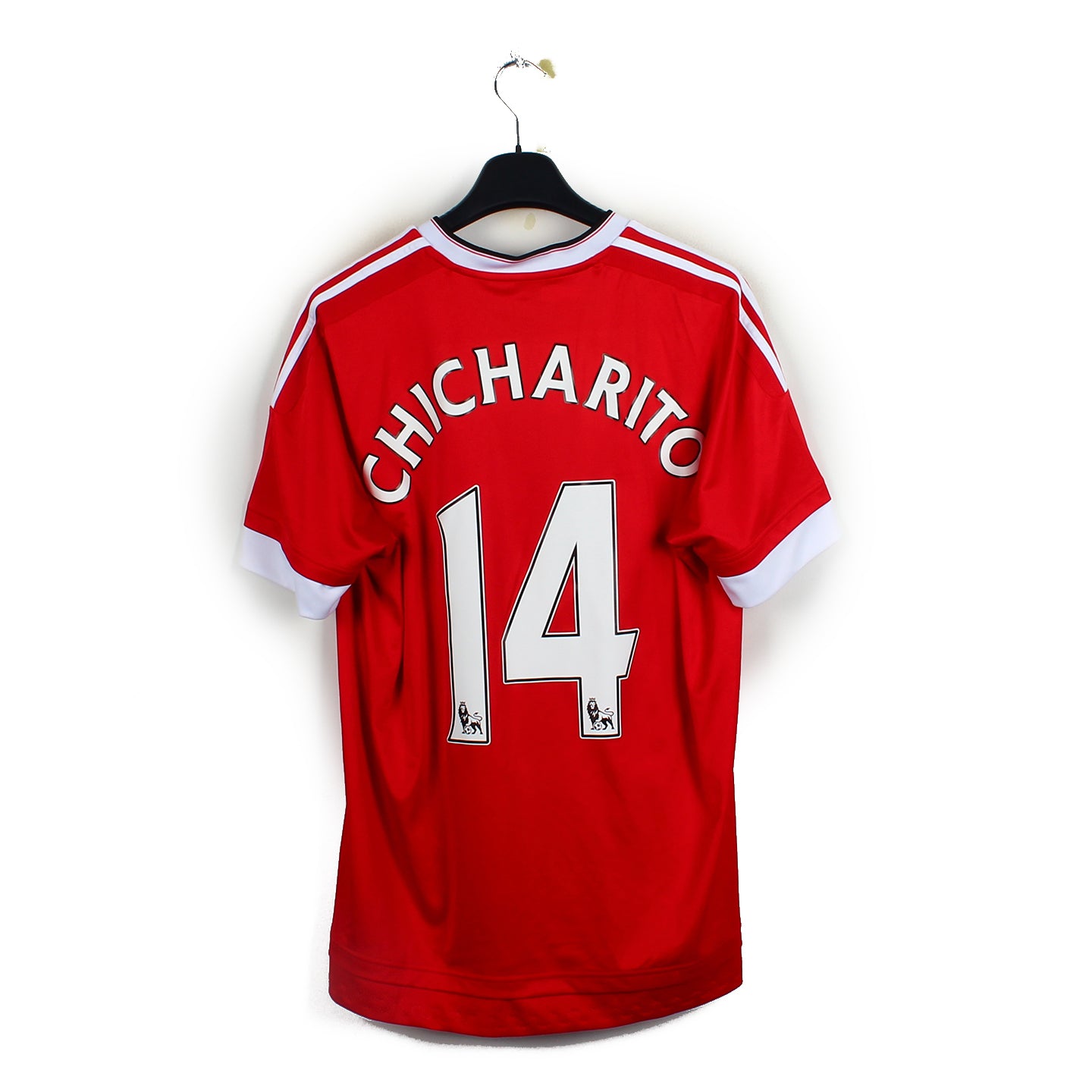 Histoire : Maillot domicile porté par les Red Devils lors de la dernière saison de Van Gaal au club. Les Mancuniens remporteront la FA Cup, qui viendra leur sauver la saison.