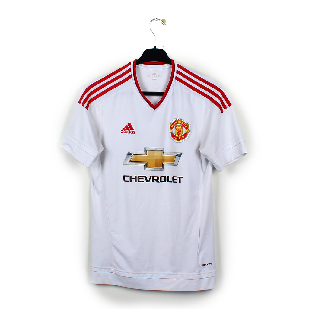 Histoire : Maillot extérieur porté par les Red Devils lors de la dernière saison de Van Gaal au club. Les Mancuniens remporteront la FA Cup, qui viendra leur sauver la saison.