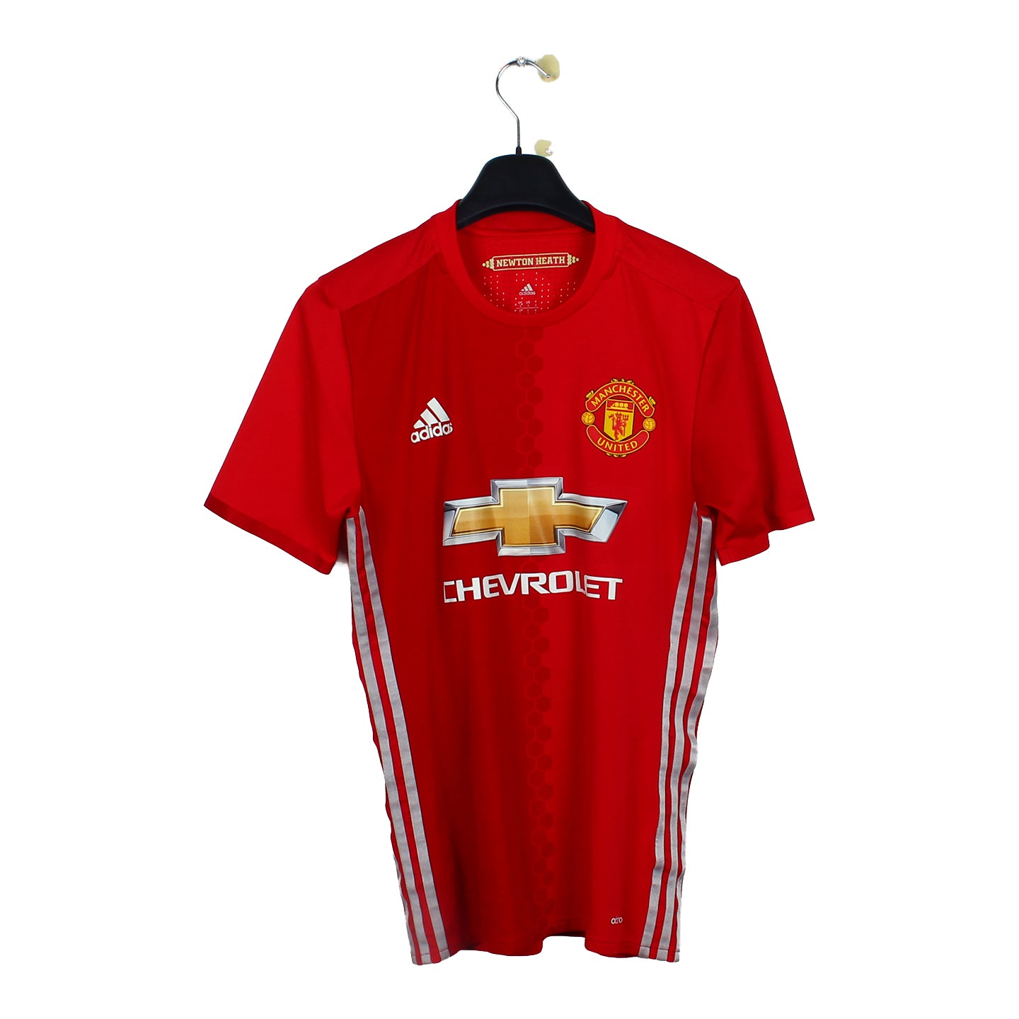Histoire : Maillot domicile porté par les Red Devils lorsque Mourinho devenait le nouvel entraineur. Le club réalisera le doublé Europe League-League Cup.