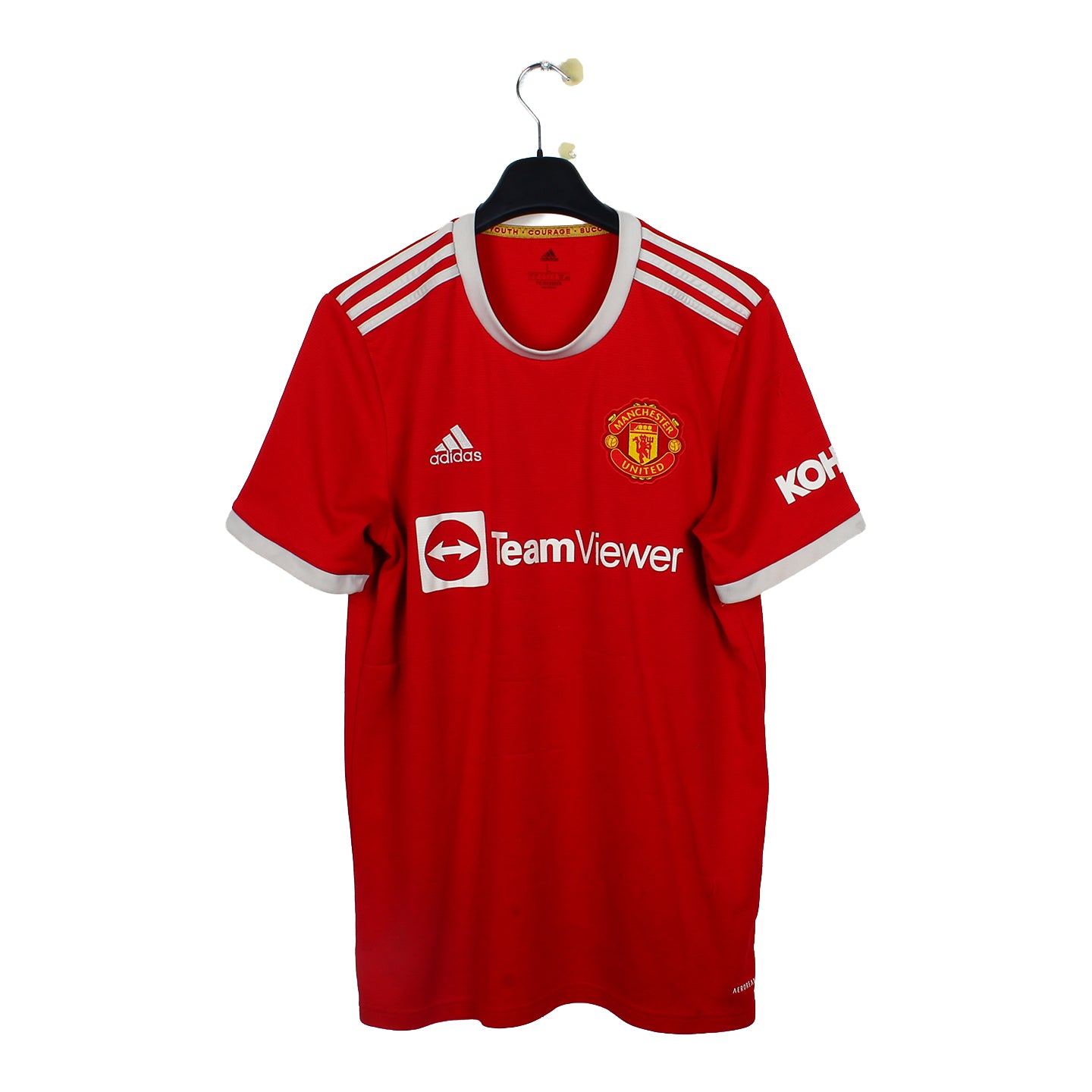Le maillot en détail : Maillot dans un bon état, les logos et le sponsor sont impeccables. Des fils tirés sont présentes sur la face et au dos ainsi qu'une petite tâche au bas du maillot.