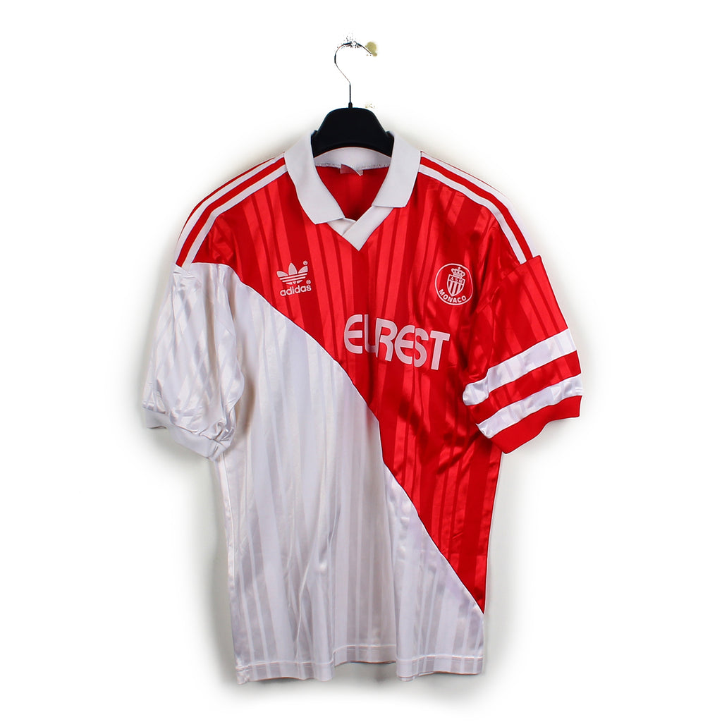 Histoire : Rare maillot domicile porté par les joueurs de la principauté lors de la dernière saison d'Arsène Wenger au club. L'alsacien sera démis de ses fonctions après un début de saison raté et l'ASM, avec 3 autres entraîneurs qui se succéderont, finira tout de même à la 6ème place de première division.