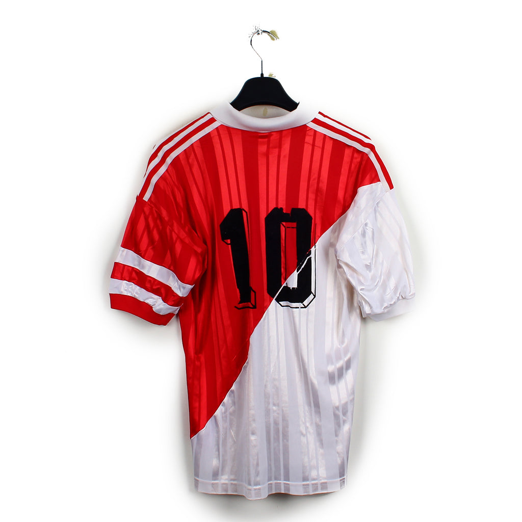 Le maillot en détail : Maillot collector dans un bon état général. Les logos sont intacts, le sponsor également. Quelques petites traces et usure au niveau du flocage en feutrine au dos.