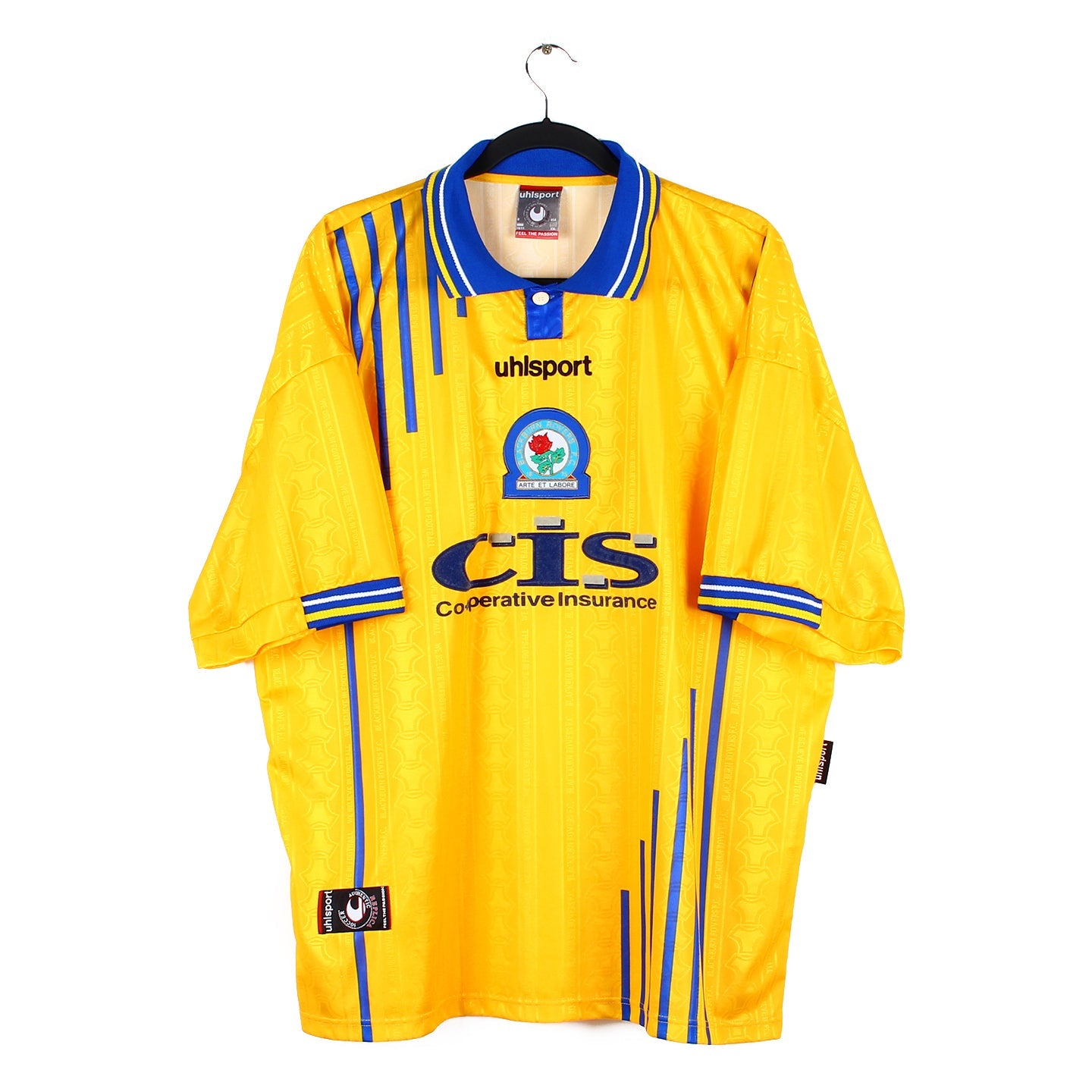 Histoire : Maillot extérieur porté par Blackburn lors d'une saison où Roy Hodgson se verra remplacer par Brian Kidd dès décembre suite à de mauvais résultats. Il n'arrivera pas à redresser la barre et le club tombera, seulement 4 ans après son titre de champion d'Angleterre.