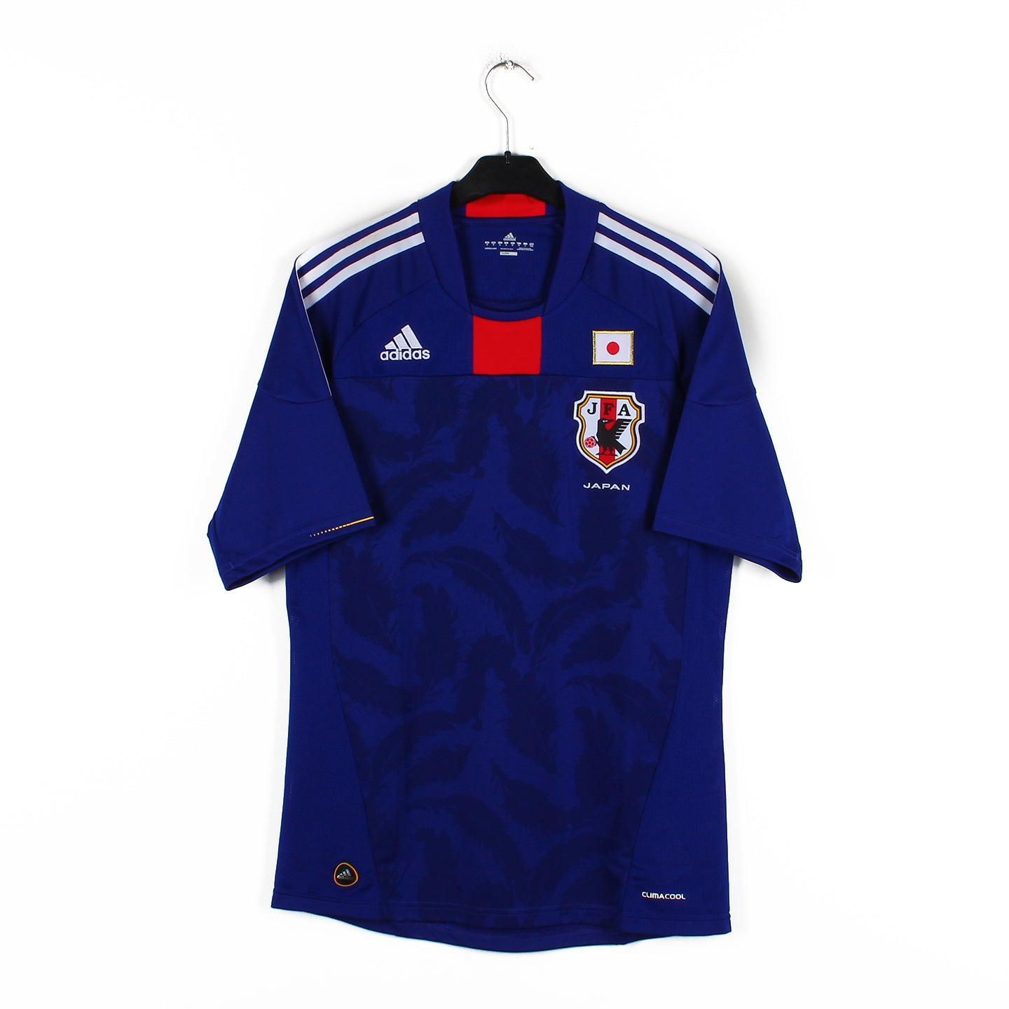 Histoire : Maillot domicile porté par la sélection japonaise lors de la Coupe du Monde 2010 organisée en Afrique du Sud. Les hommes d'Okada passeront brillamment les phases de groupe avant de se faire sortir en huitièmes de finale aux tirs au but, face au Paraguay.