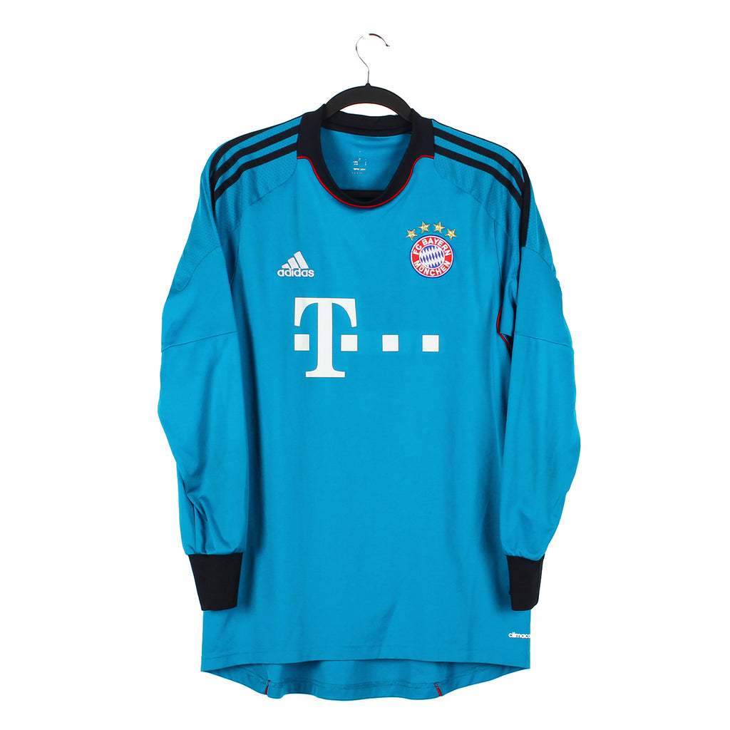Histoire : Maillot gardien porté par les bavarois lors de la première saison de Pep Guardiola à la tête de l'équipe. Ribery et ses coéquipiers écraseront la Bundesliga terminant avec 90 points et 19 d'avance sur le Borussia Dortmund. Les allemands ne parviendront toutefois pas à conserver leur titre en Champions League après une sèche élimination 5-0 (score cumulé) face aux futurs champions madrilènes en demi-finale.