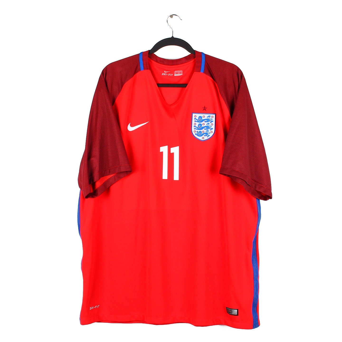 Histoire : Maillot extérieur porté par la sélection des Trois Lions menée par Roy Hodgson à l'Euro 2016. Lui et ses joueurs passeront la phase de groupe avec difficulté avec de se confronter à la surprise Islandaise qui les éliminera sur le score de 2 buts à 1.