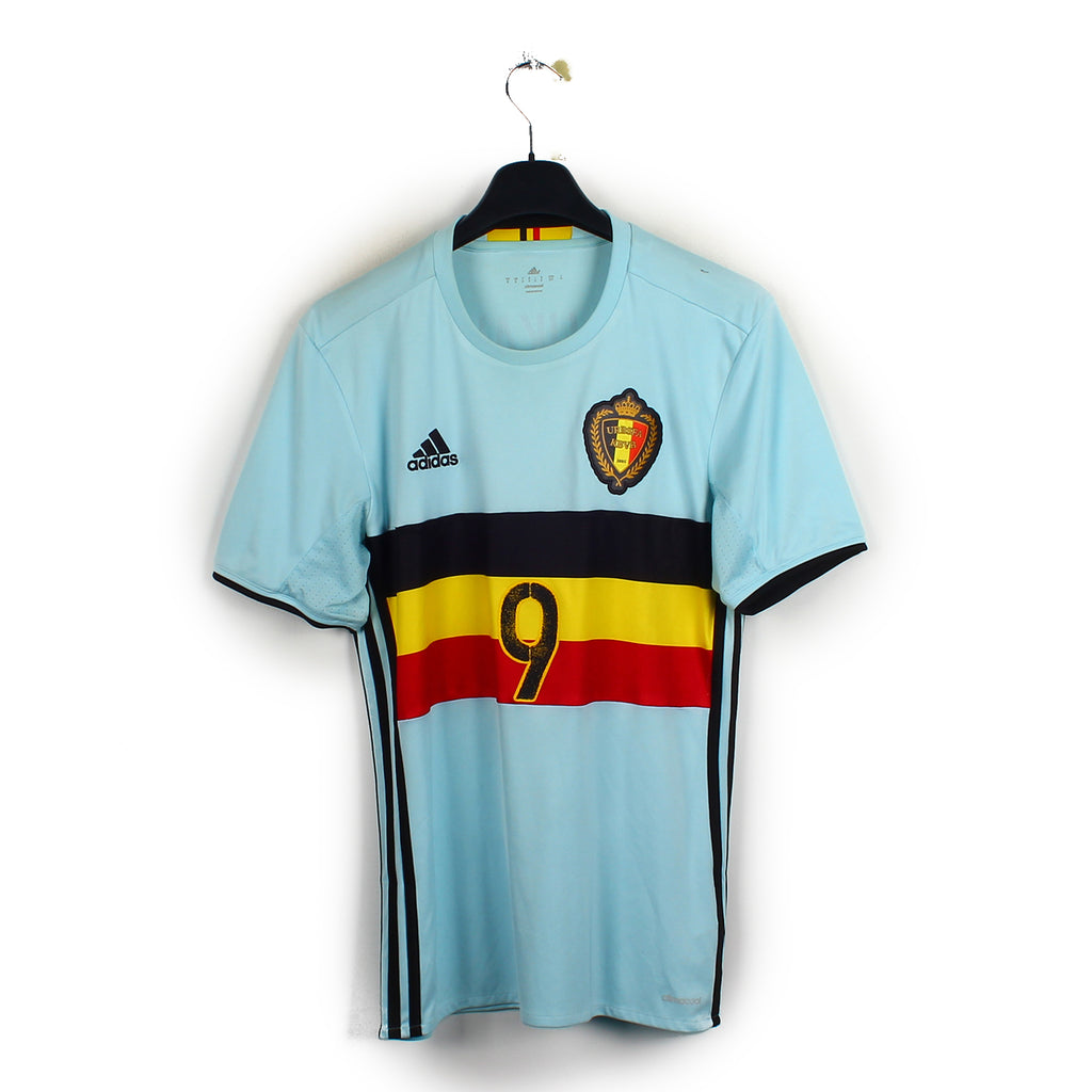 Histoire : Maillot extérieur porté par les diables rouges lors de l'Euro 2016 organisé en France. Après avoir terminés second du groupe E derrière l'Italie, Eden Hazard et ses coéquipiers atteindront les quarts de finale avant d'être éliminés 3-1 par la sélection galloise menée par Gareth Bale.
