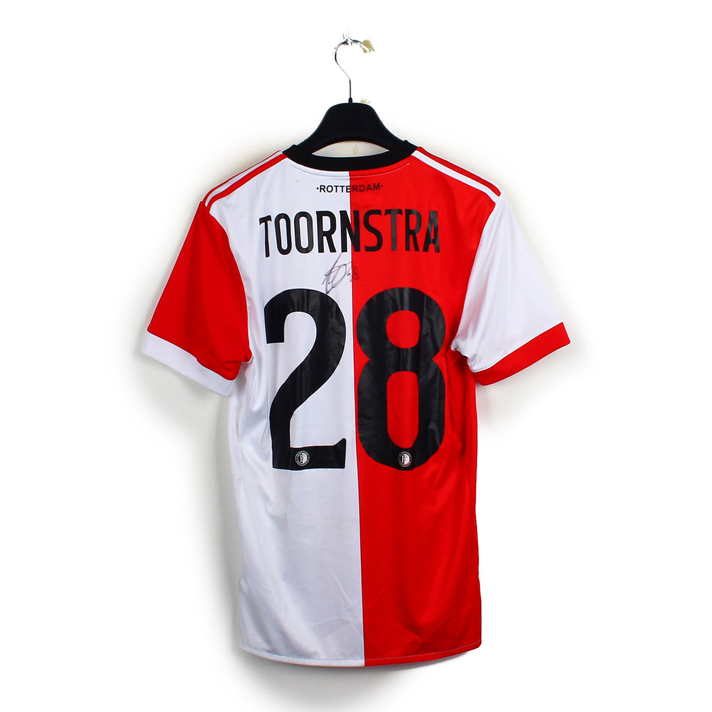 Histoire : Maillot domicile porté durant la saison 2017/18. Troisième saison sur le banc de Rotterdam pour le coach Van Bronckhorst, son équipe terminera 4e de Erdevisie, remportera les deux coupes nationales et jouera les phases de groupe de la Champions League. La nouvelle recrue Berghuis trouvera 18 fois le chemin des filets en championnat.