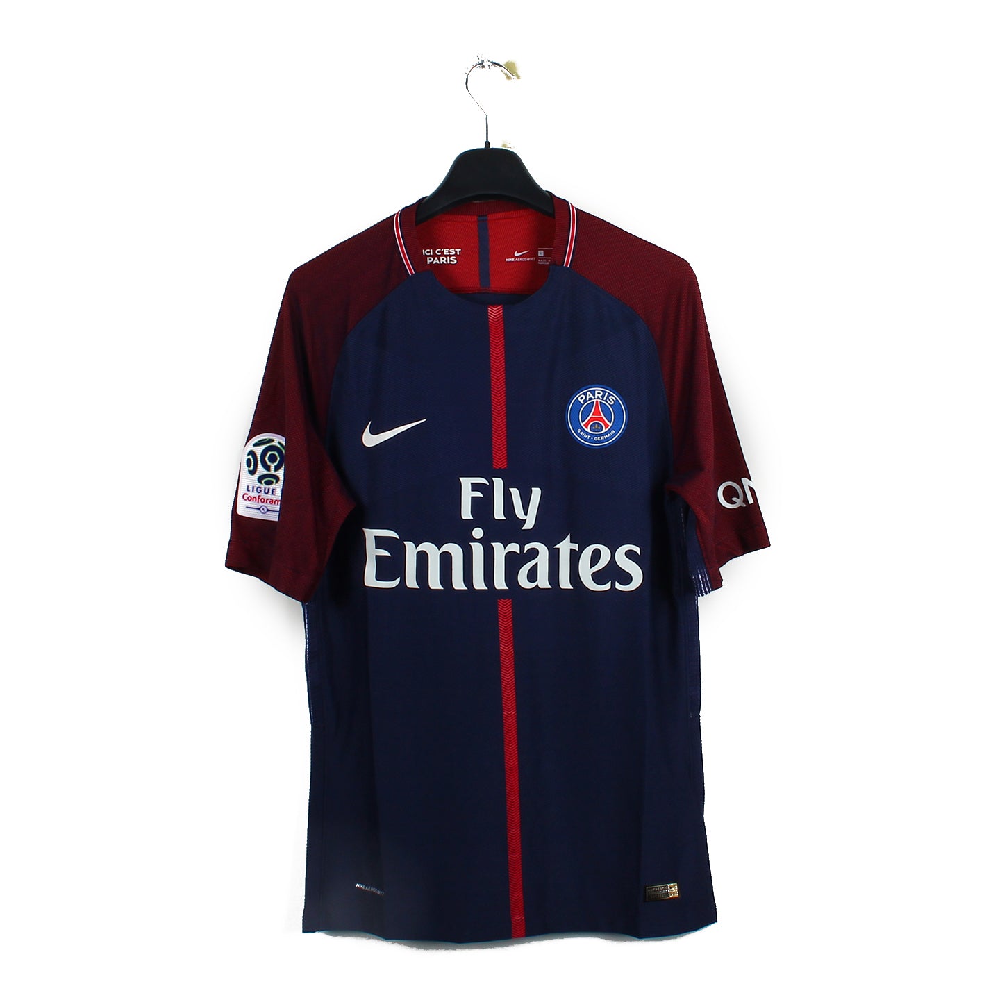 Histoire : Maillot domicile porté lors de la première saison de Neymar au PSG. Les hommes d'Unai Emery ont tout raflé sur la scène nationale : Ligue 1, Coupe de la Ligue, Coupe de France et Trophée des Champions. Parcours plus compliqué en Europe ou les coéquipiers de la star brésilienne seront éliminés dès les huitièmes de finale par le Real Madrid. Neymar finira meilleur passeur du club.