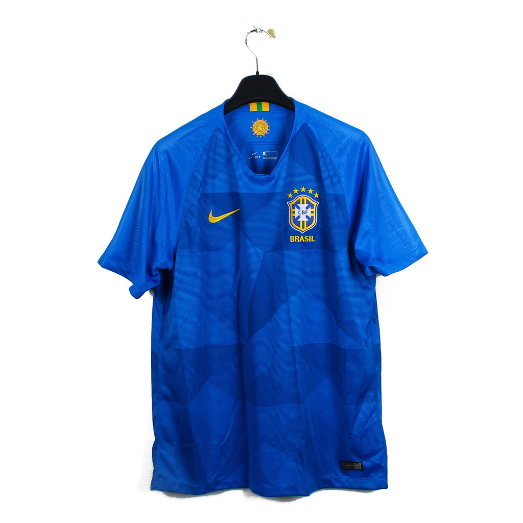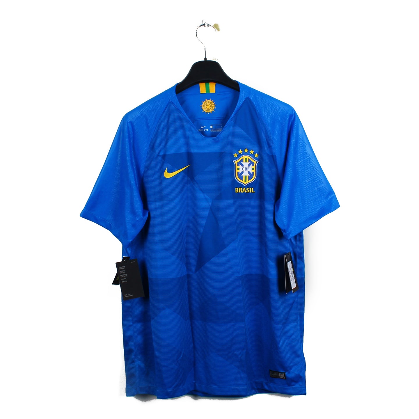 Histoire : Maillot extérieur porté les brésiliens lors de la Coupe du Monde 2018, édition où les coéquipiers de Neymar iront jusqu'en quart de finale, éliminés 2-1 par l'excellente Belgique.