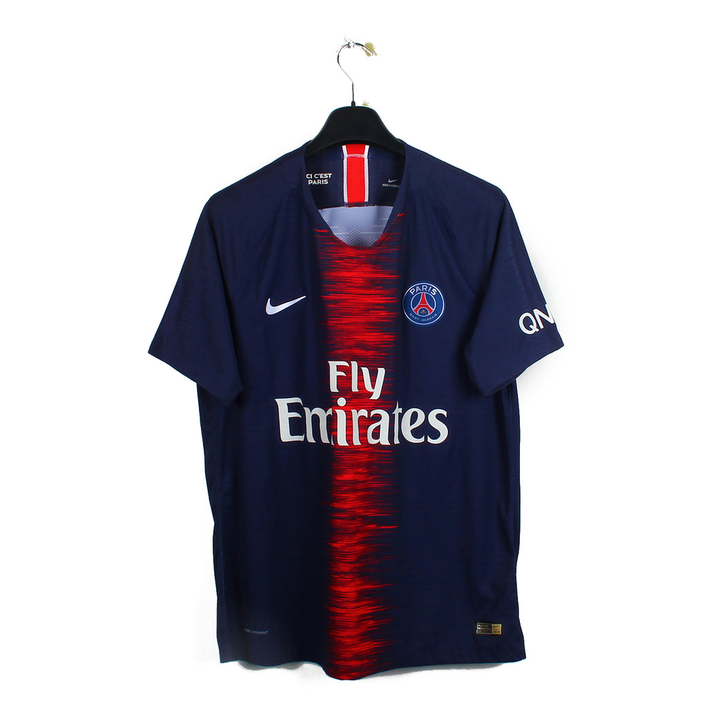 Histoire : Maillot domicile porté par les hommes de Thomas Tuchel lors d'une saison où ils gagneront la Ligue 1 et le Trophée des Champions. Mbappé, le prodige français finira meilleur buteur du championnat pour la première fois (33 réalisations).