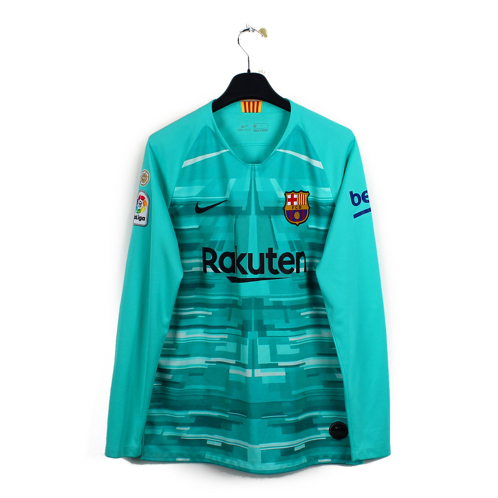 Histoire : Maillot gardien domicile porté par les hommes de Quique Setién une saison où il termineront second du championnat avec un total de 82 points, 5 unités derrière le Real Madrid. En Europe, après une phase de poule passée avec succès, les coéquipiers de Léo Messi seront écrasés par le Bayern Munich en concédant une lourde défaite 8-2 sur l'ensemble des deux rencontres.