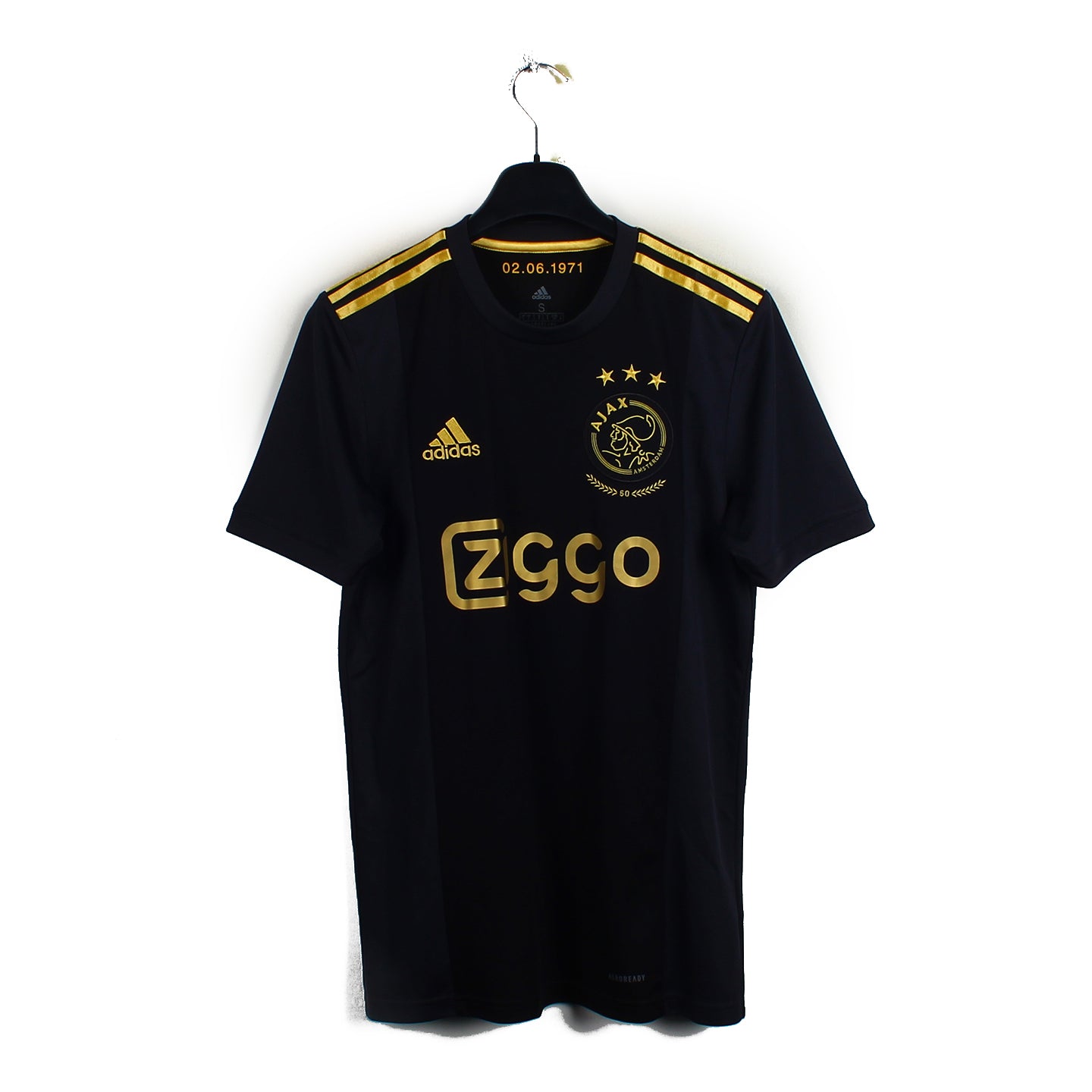 Histoire : Maillot third porté lors d'une saison durant laquelle les hommes d'Eric Ten Hag écraseront le championnat. Seulement 2 défaites et 102 buts inscrits pour 23 encaissées.