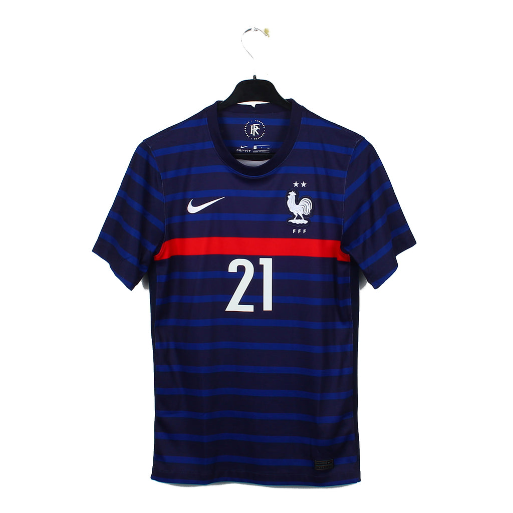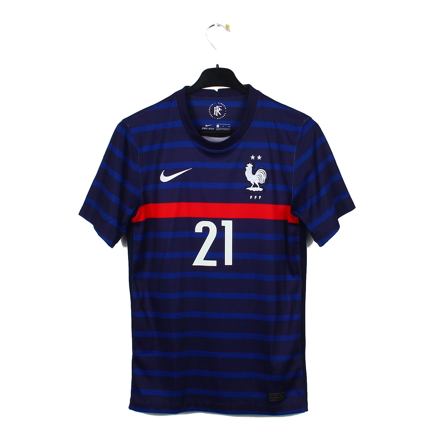 Histoire : Maillot domicile porté lors de matchs de qualifications, de Ligue des Nations et de l'Euro 2020, transformé en Euro 2021 suite à la pandémie du Covid. Les Bleus ne parviendront pas à confirmer leur statut de favoris après une défaite face à la Suisse aux tirs au but lors des 8ème de finale.