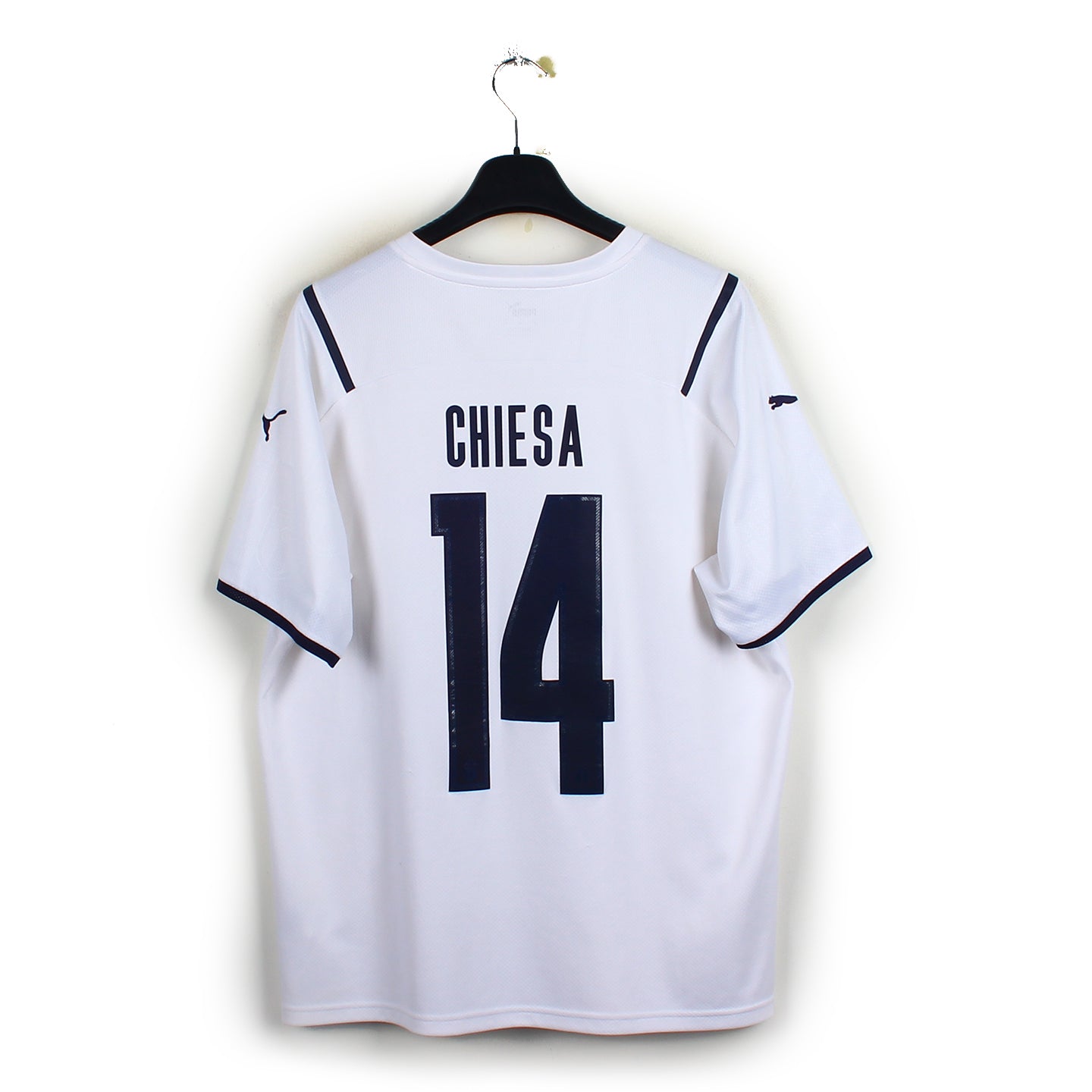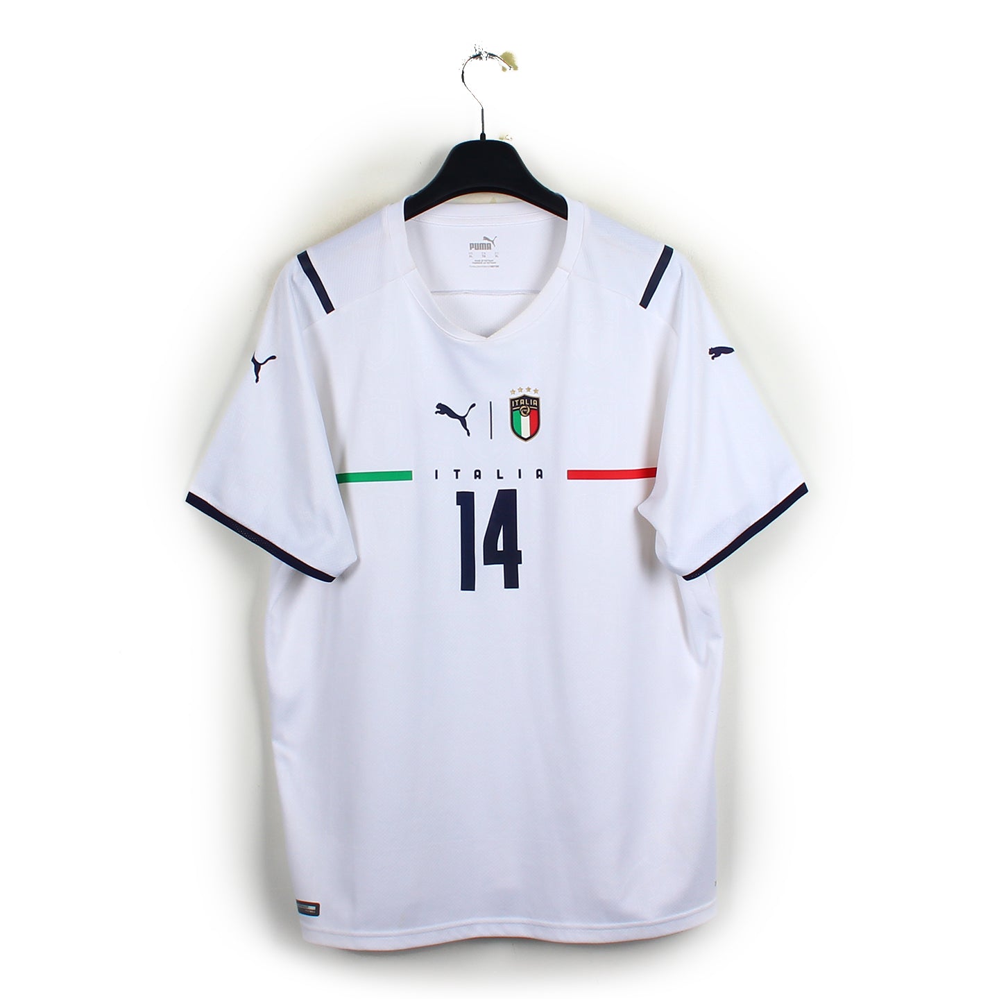 Histoire : Maillot extérieur porté lors de l'Euro 2021 par les italiens. Les hommes de Roberto Mancini réaliseront une compétition incroyable. Ils élimineront l'Autriche, la Belgique et l'Espagne avant de conclure de toute beauté cet Euro avec une victoire en finale face aux Anglais.