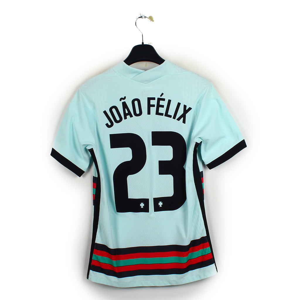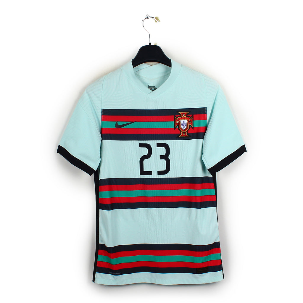 Histoire : Maillot extérieur porté par les tenants du titre portugais lors de l'Euro 2021. Cristiano et les siens passeront sur le fil les phases de poules avant de se heurter face aux Belges en huitièmes (défaite 1-0).