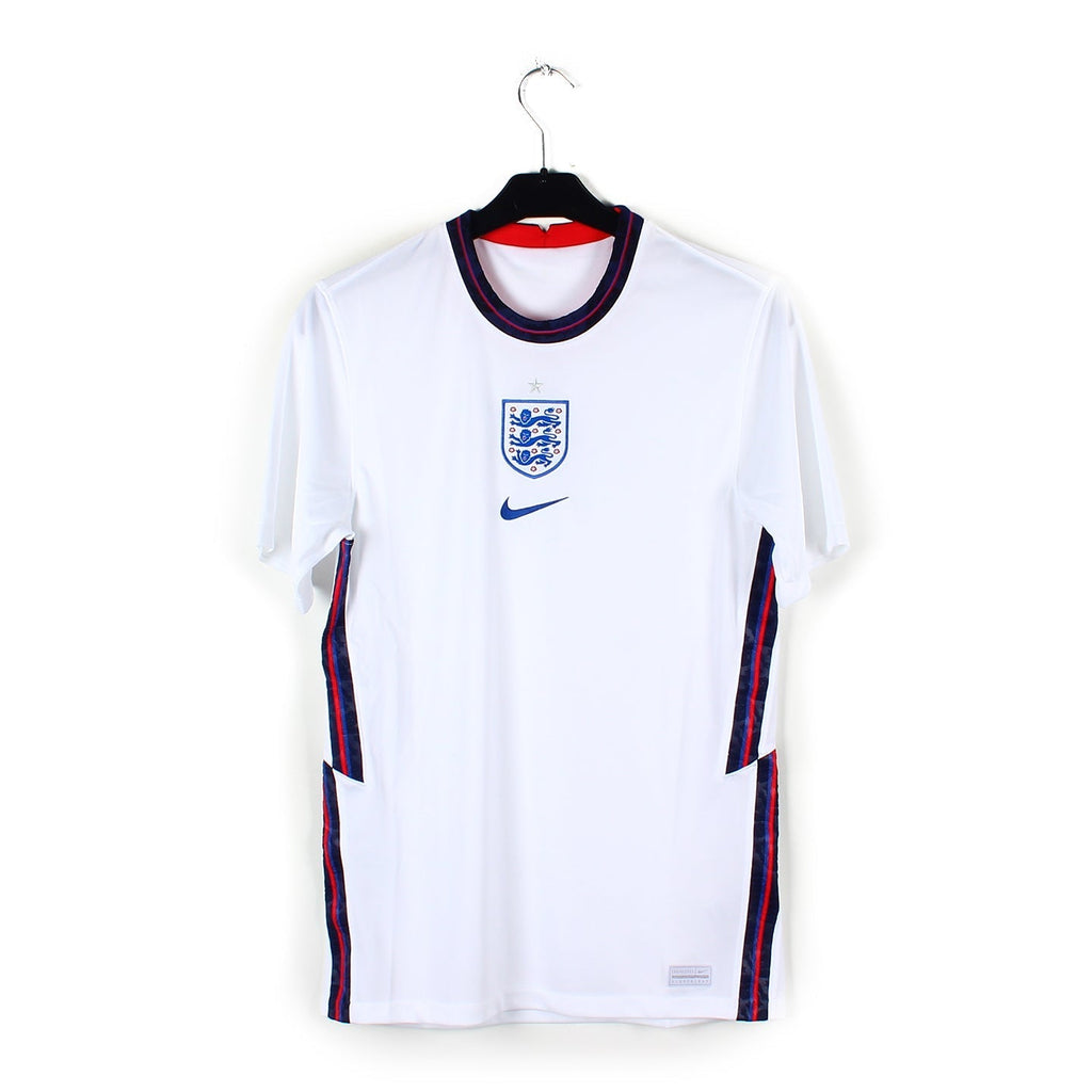 Histoire : Maillot domicile porté par les Three Lions lors d'un Euro réussi. Les anglais sortiront invaincus du groupe B avant de sortir successivement l'Allemagne, l'Ukraine et le Danemark. En finale face aux italiens, les hommes de Southgate mèneront rapidement au score avant d'être rattrapés et battus aux tirs au but.