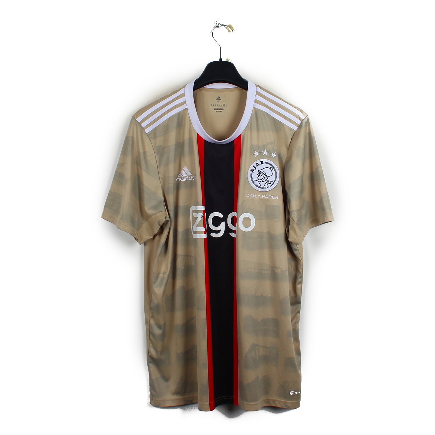 Histoire : Maillot third porté lors d'une saison durant laquelle les hommes d'Eric Ten Hag écraseront le championnat. Seulement 2 défaites et 102 buts inscrits pour 23 encaissées.