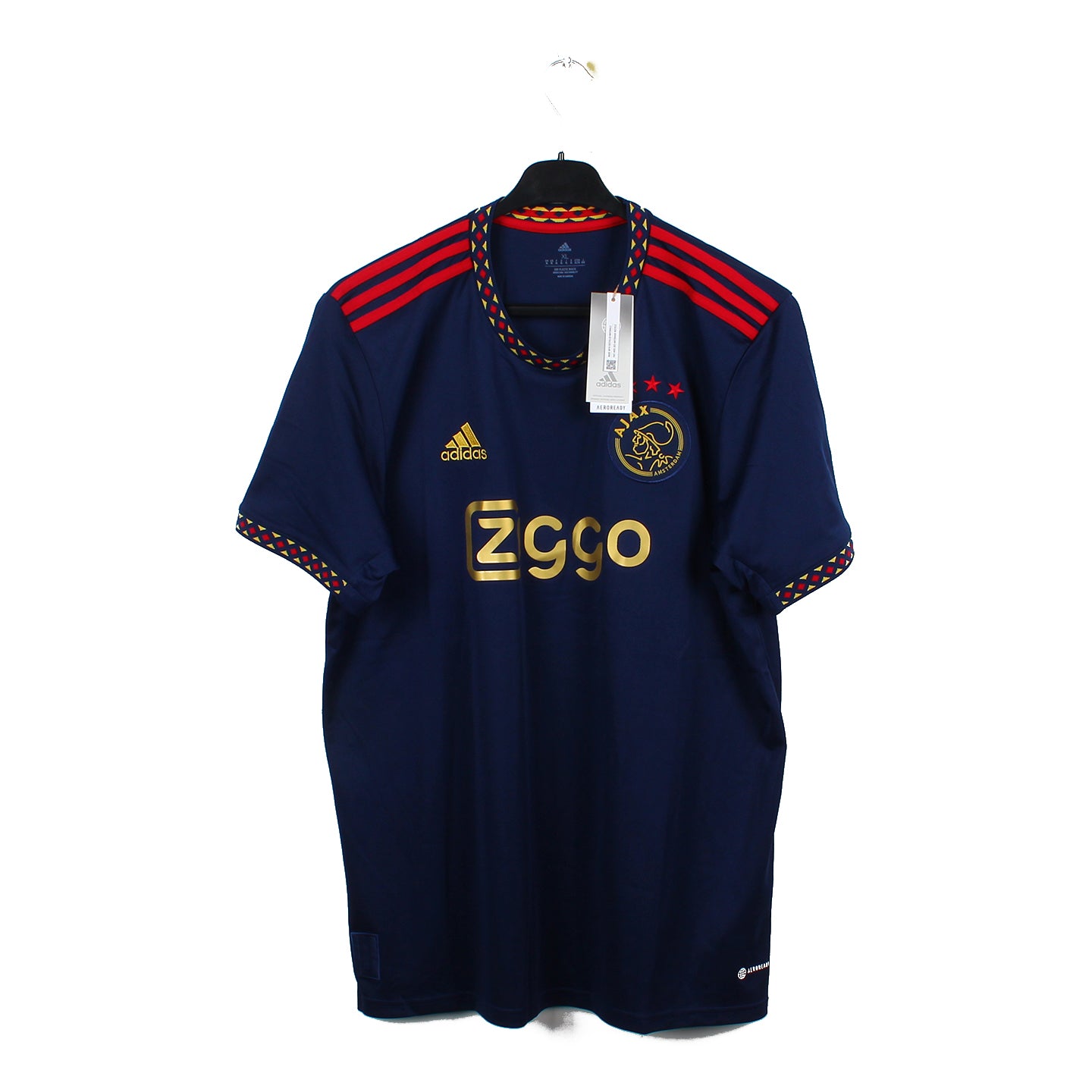 Histoire : Maillot extérieur porté lors d'une saison durant laquelle les hommes d'Eric Ten Hag écraseront le championnat. Seulement 2 défaites et 102 buts inscrits pour 23 encaissées.
