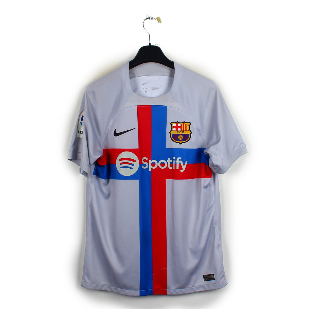 Histoire : Maillot third porté par le Barca lors d'une saison où le club remportera la Liga avec 88 points, bien aidé par sa recrue Robert Lewandowski.